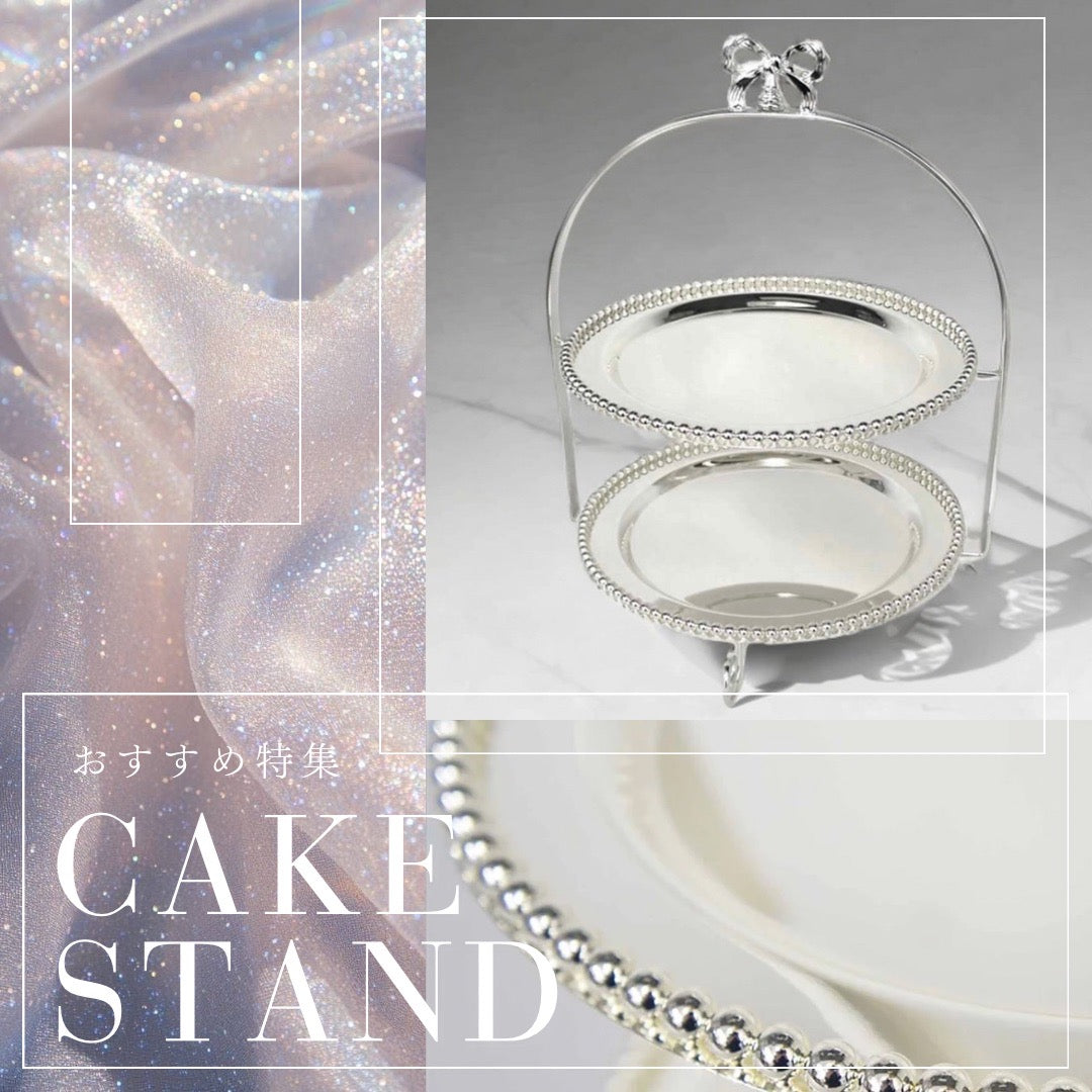 リボンのケーキスタンドをご紹介!ティータイムを上質に演出する2段のエレガントな佇まい。リボンが光る愛されデザインはパーティーにも映えます。シルバーの上品な光沢がスイーツの魅力をより引き立てます。まるでホテルラウンジのような雰囲気を日常のひとときに添えて。ケーキだけでなくフィンガーフードやフルーツの盛り付けにもぴったり。