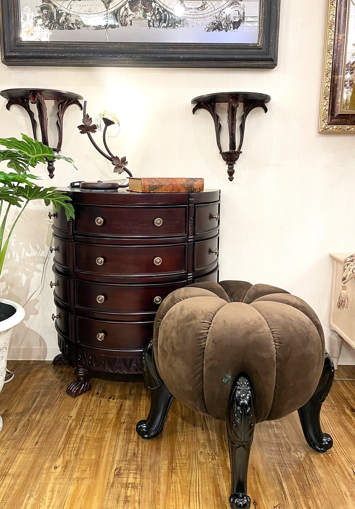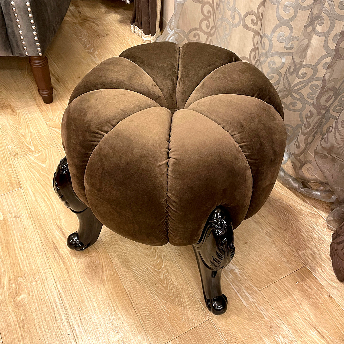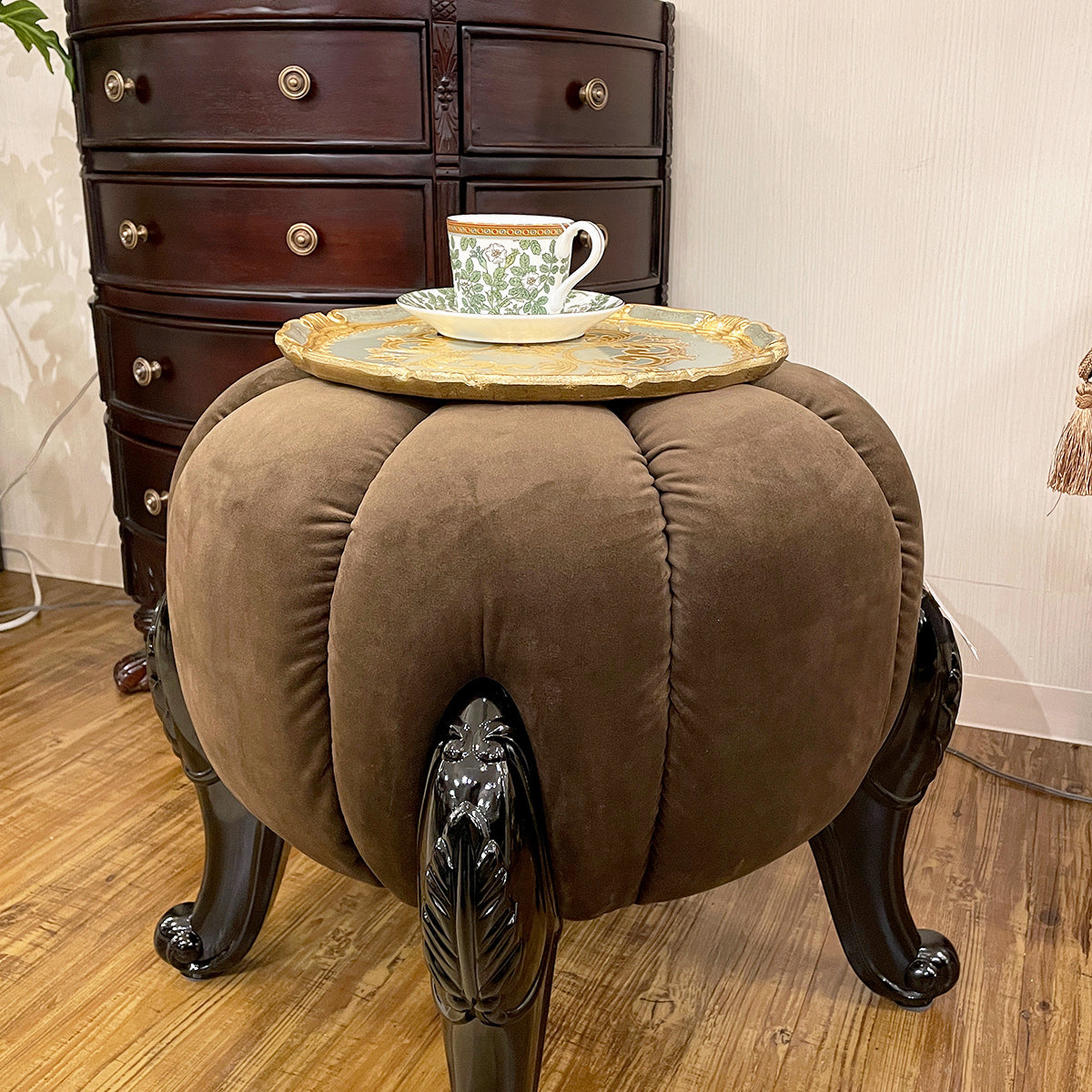 人気のかぼちゃの形のデザインスツール・オットマンに新色が登場しました。ぽってりとしたユニークなかぼちゃ型のボディに猫脚を合わせた、空間のアクセントになるヨーロッパデザインのおしゃれなスツールです。クラシックからモダンまでスタイルを選ばずインテリアのアクセントに置いて頂けます。