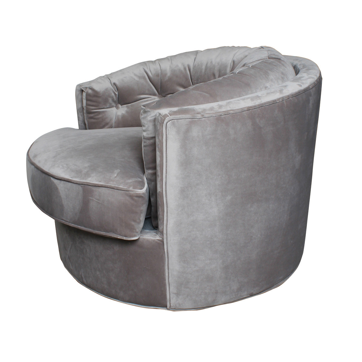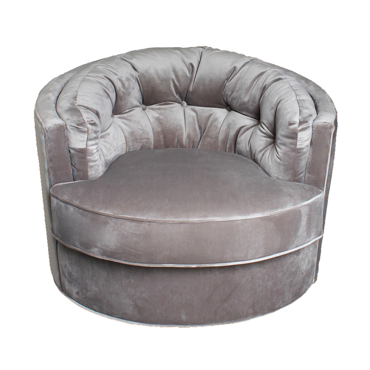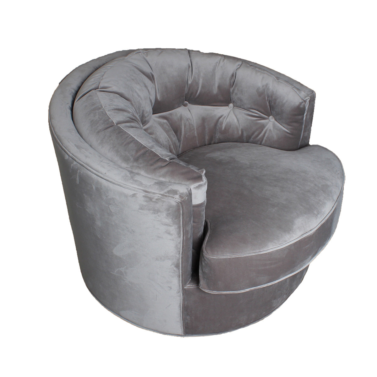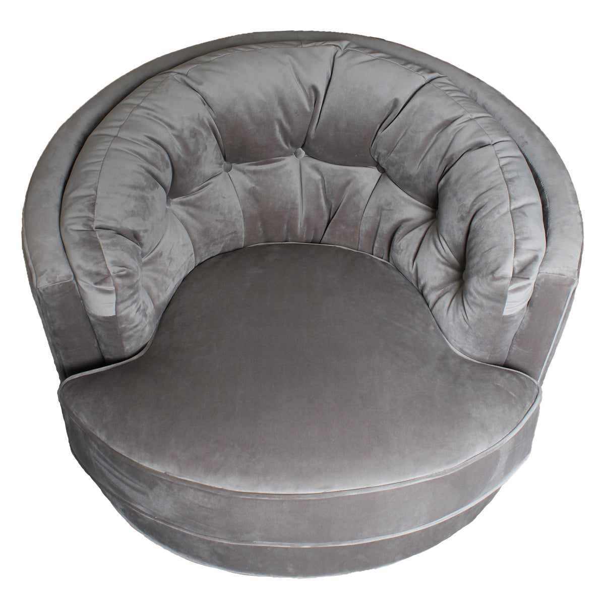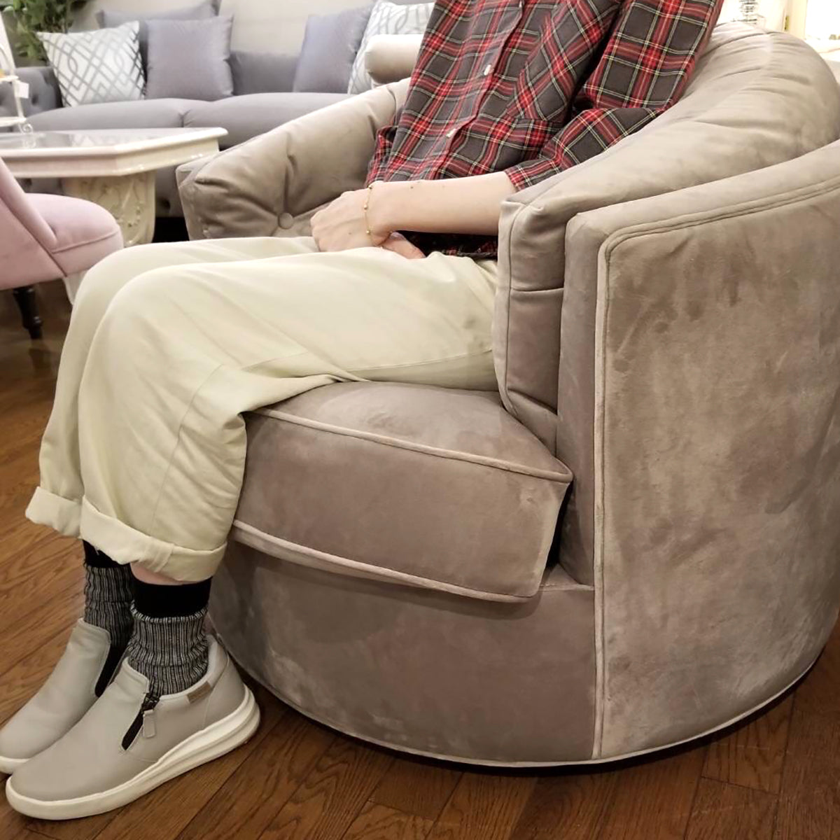少し大きめ 一人掛けソファ/ 円形ソファ回転式 ベルベット生地(グレー)