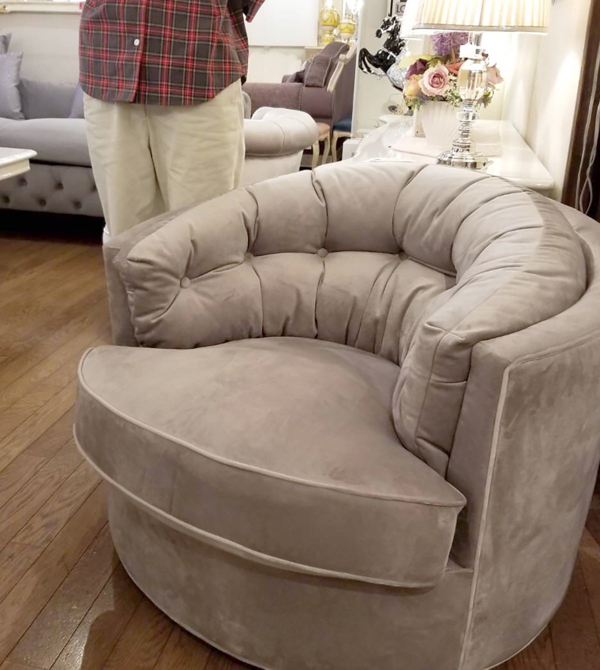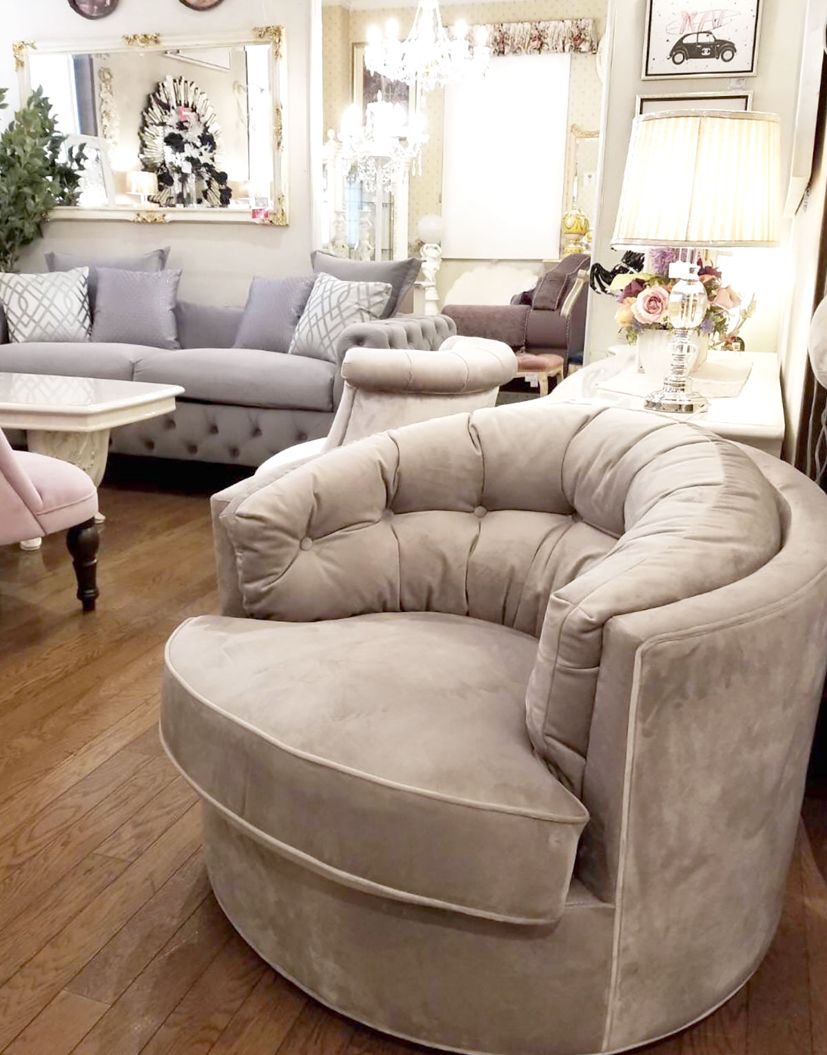 #ソファ #ベルベット #フレンチ #一人掛け #1Pチェア #1Pソファ #グレー #回転椅子