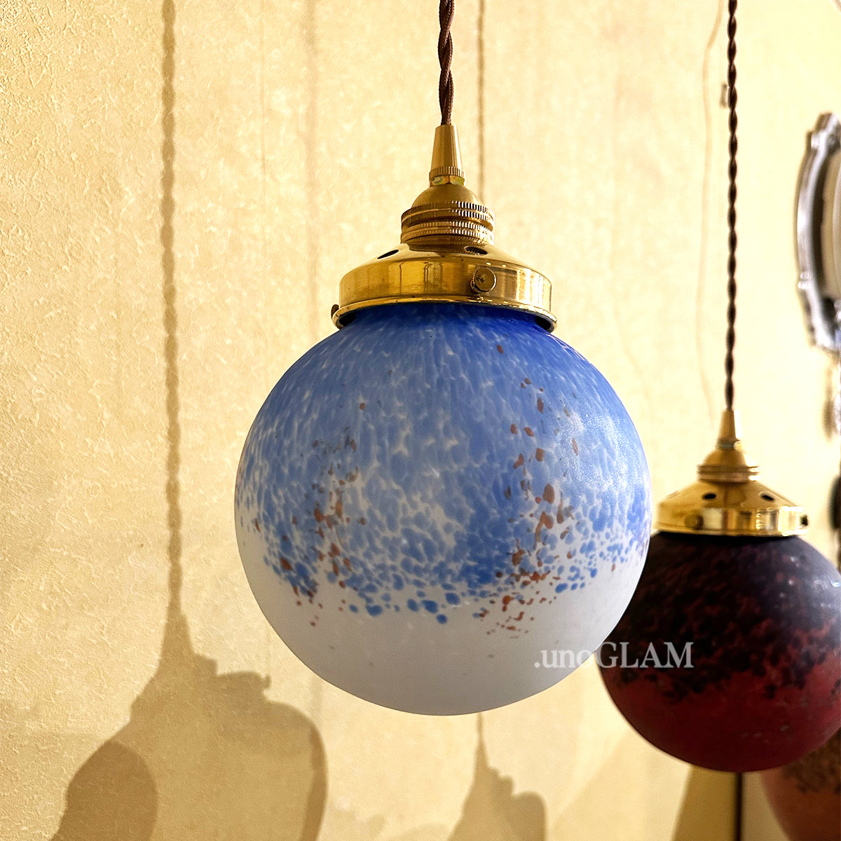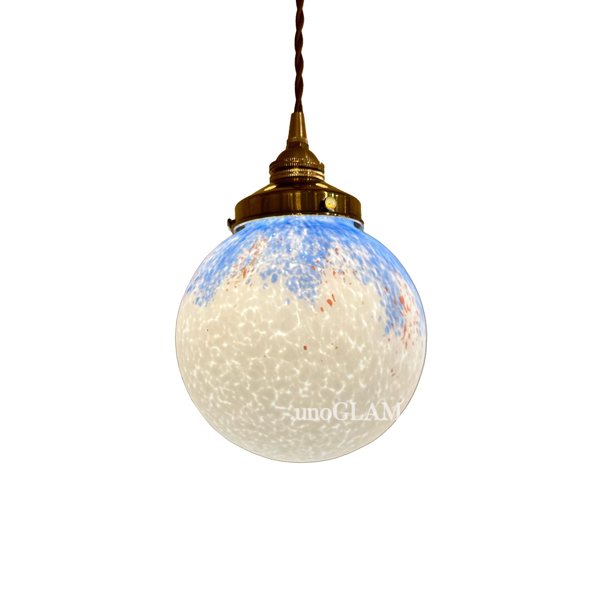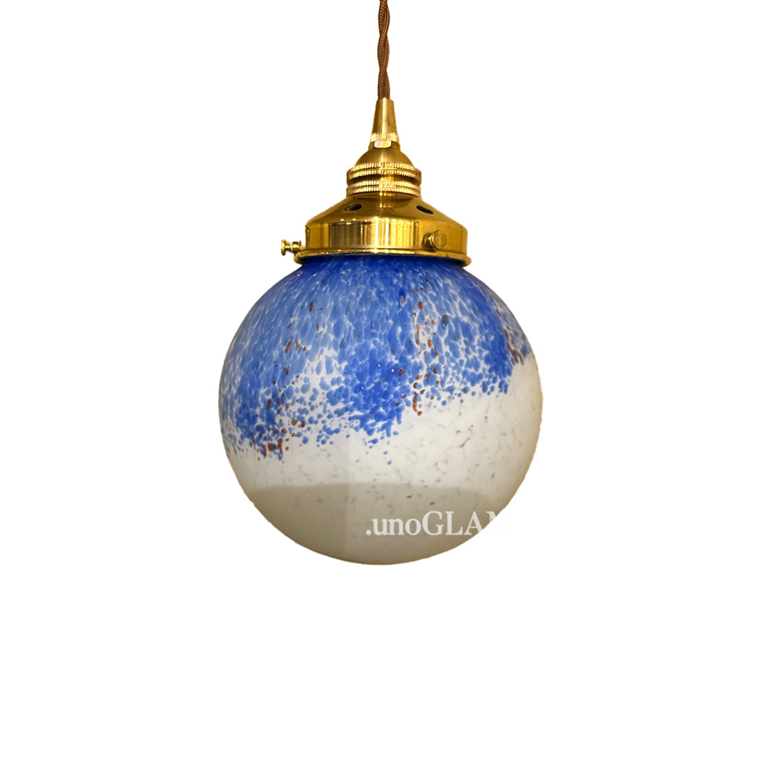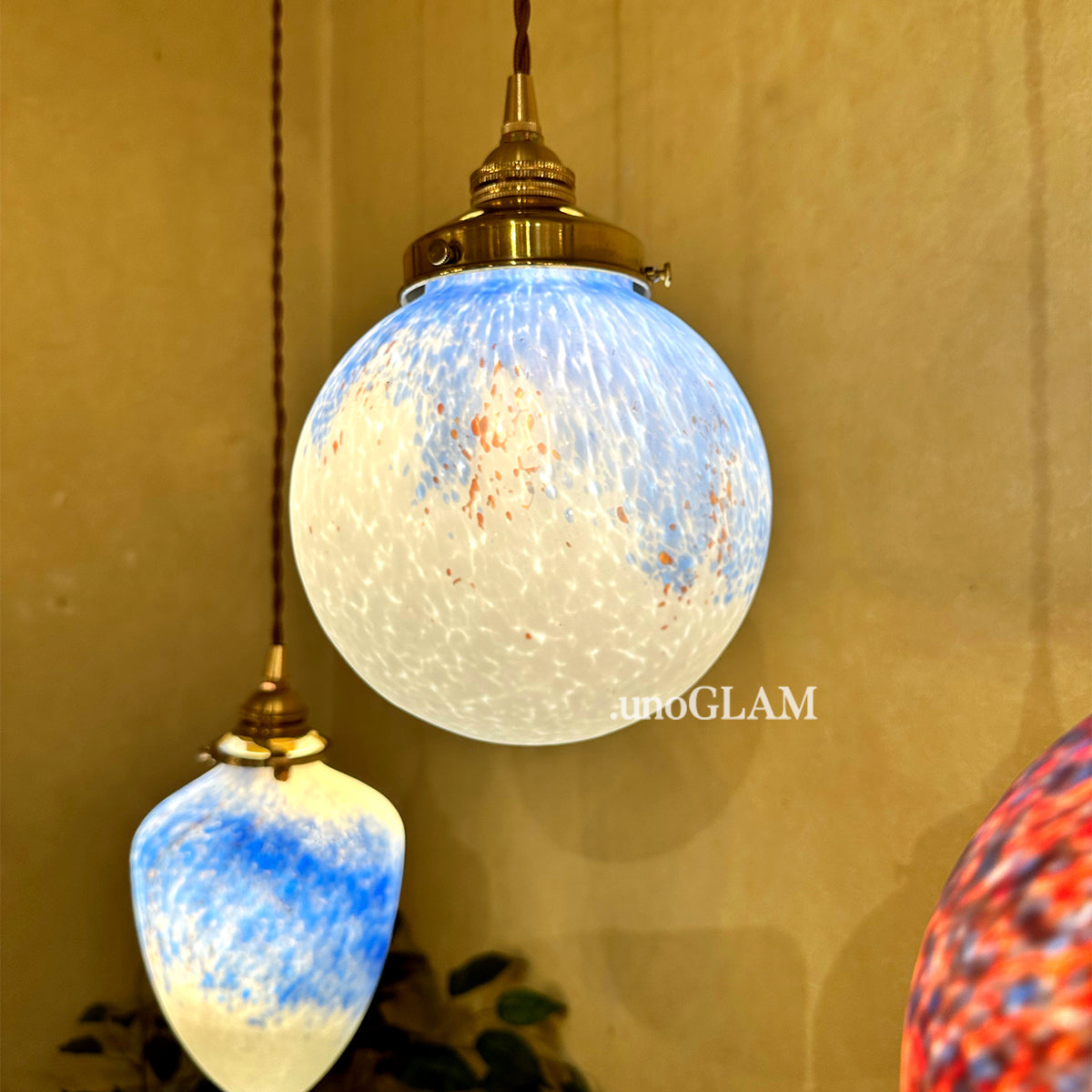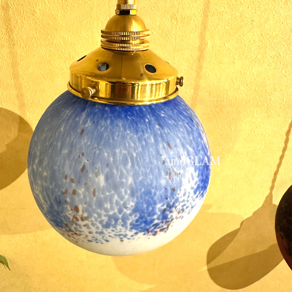 アンティーク調 ガラスペンダントライト / ルーマニア製の手作りガラス(ブルー・丸)
