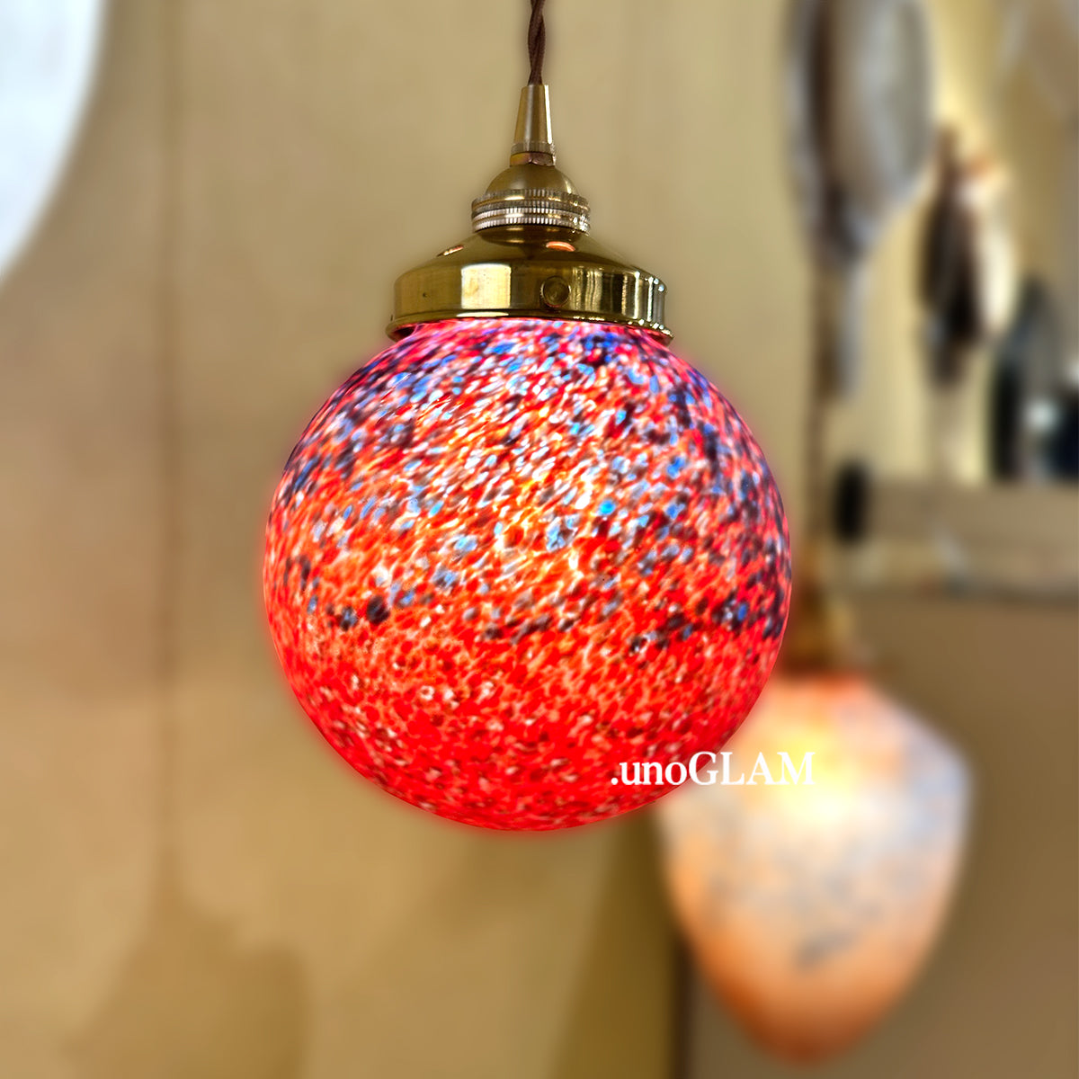 アンティーク調 ガラスペンダントライト / ルーマニア製の手作りガラス(レッド)