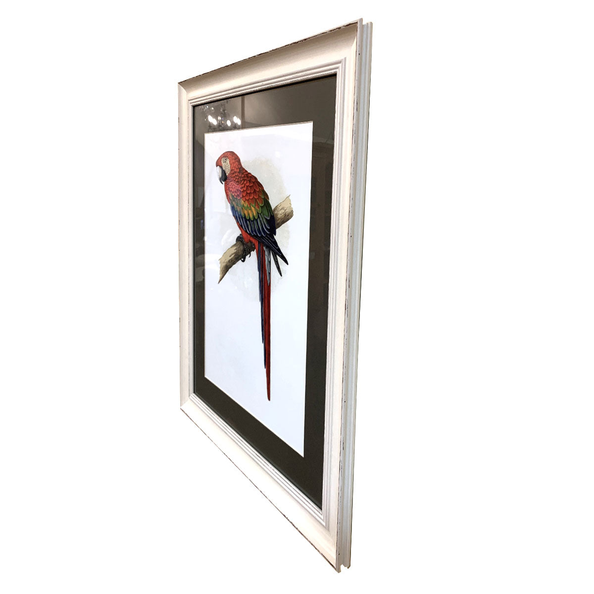 リゾートインテリアにおすすめしたい、オウム(赤)のトロピカルなアート額です。今にも飛び立ちそうな繊細なタッチで描かれたリアルなオウムは、きれいなビタミンカラーでとってもユニーク。お部屋のインテリアのエッセンスとして重宝します。