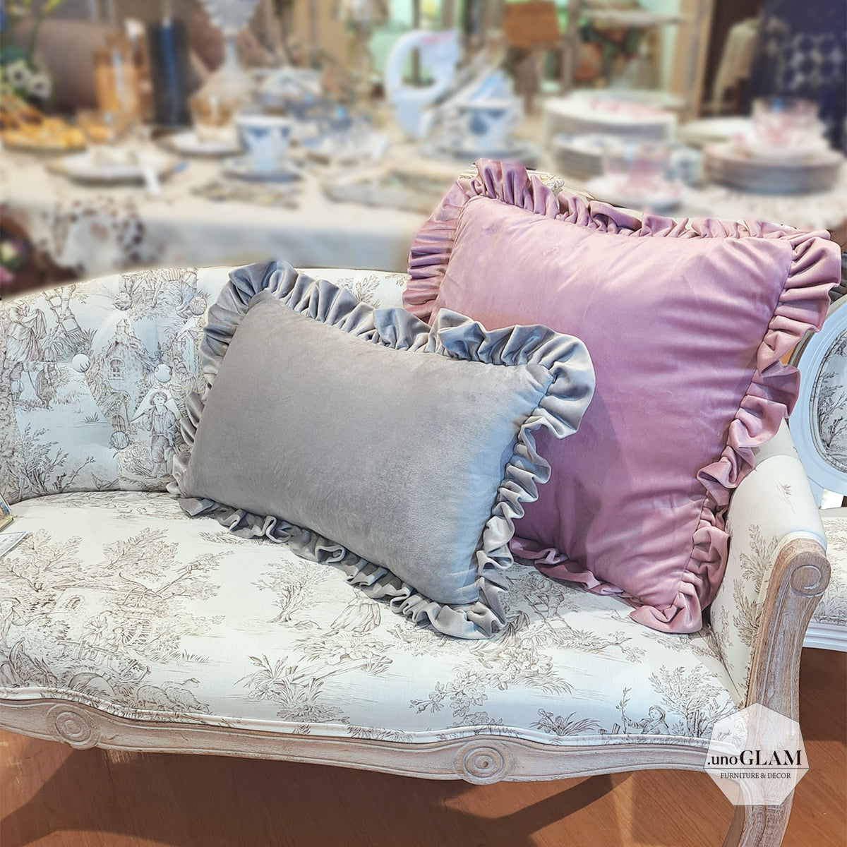 #クッション #海外インテリア #ホテルライク #クラシックモダン #グレー #ベロア #エレガント #フリル #フェミニン