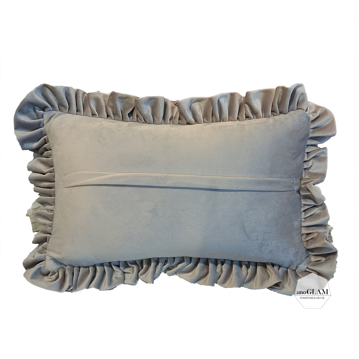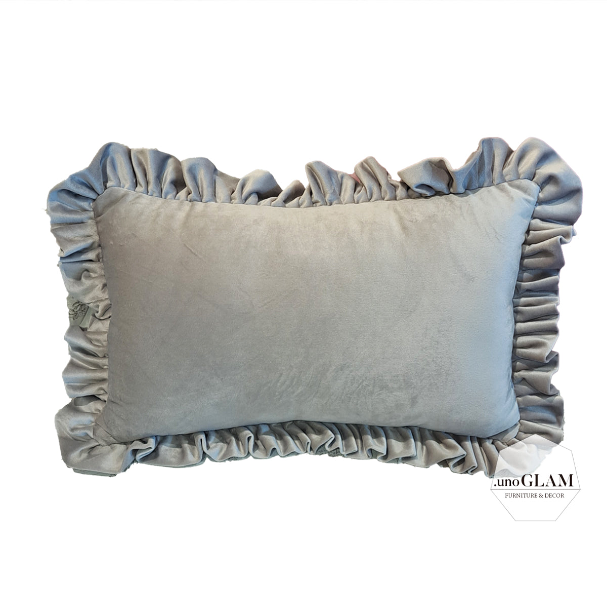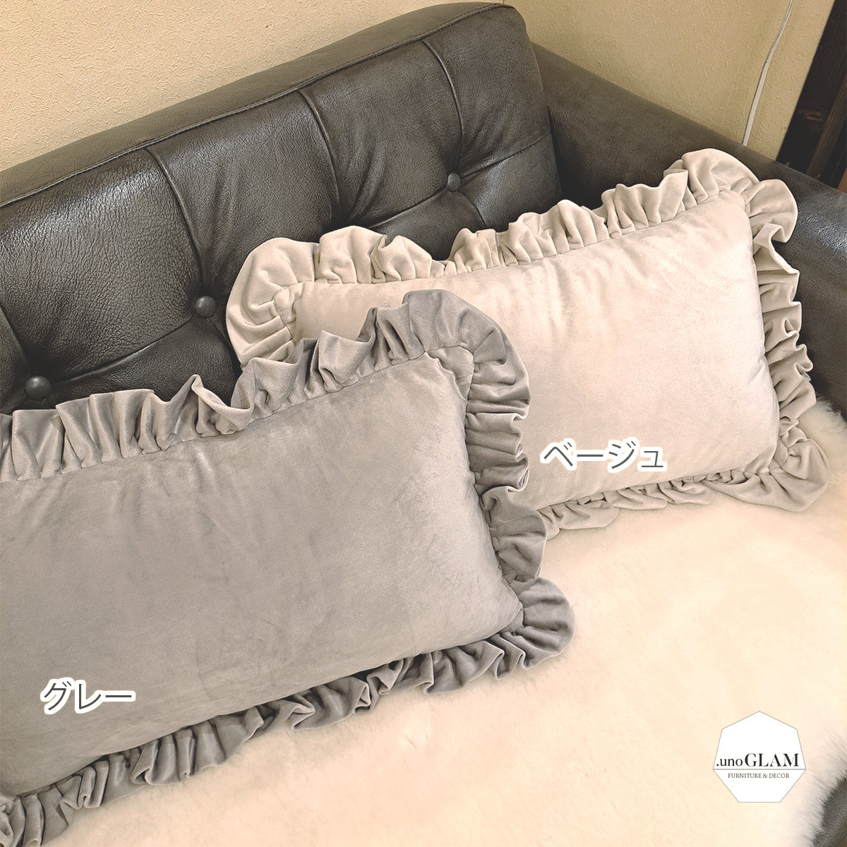 クッション / 肌触りのよいベロア生地 フリル無地 大人かわいいグレー横長クッション