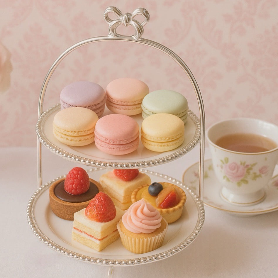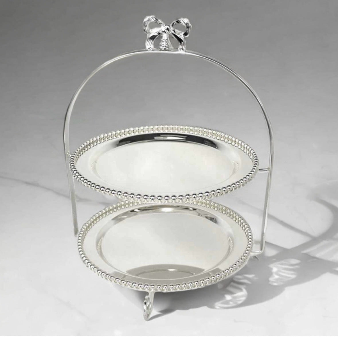 ケーキスタンド2段 取っ手付き(リボン)ディスプレイスタンドにも