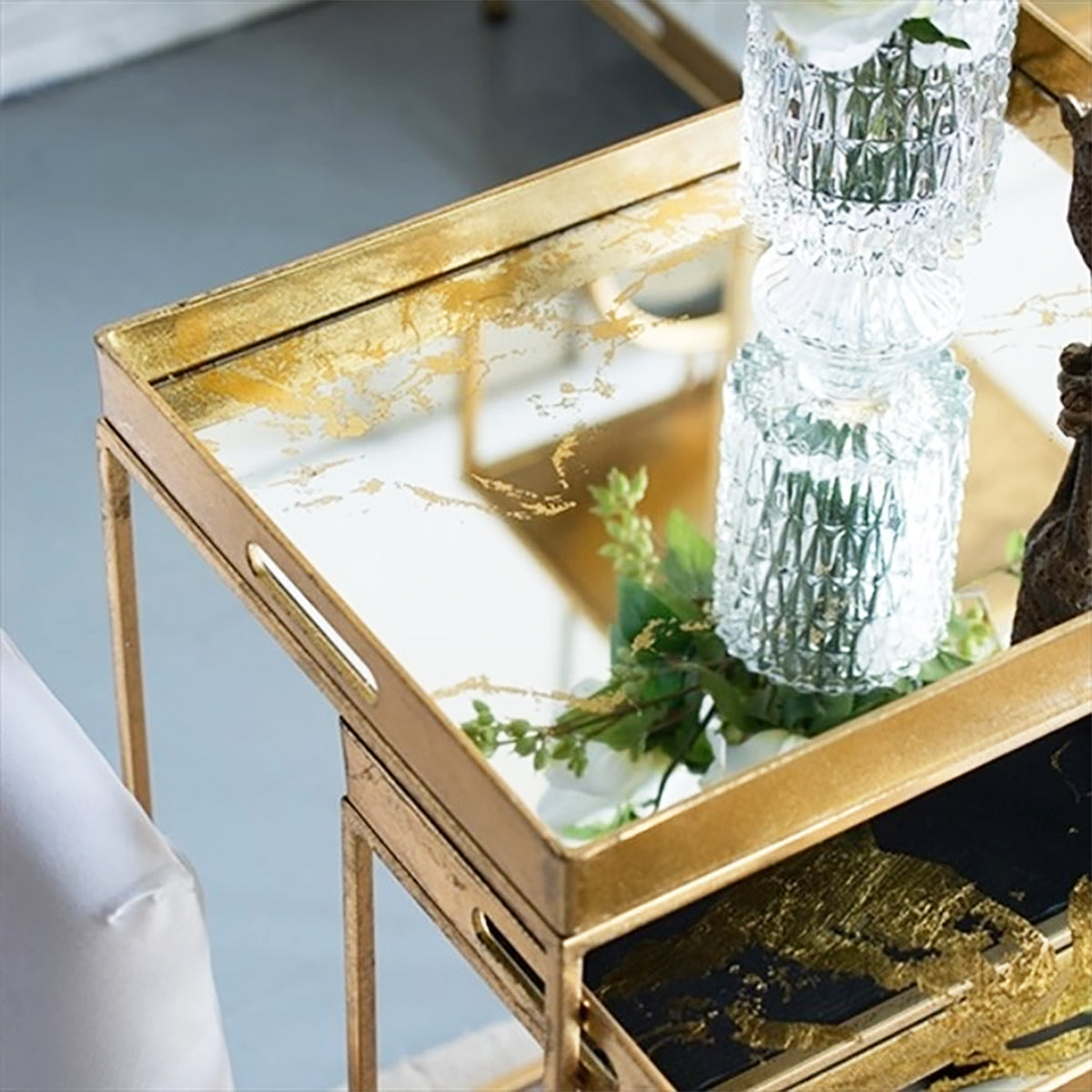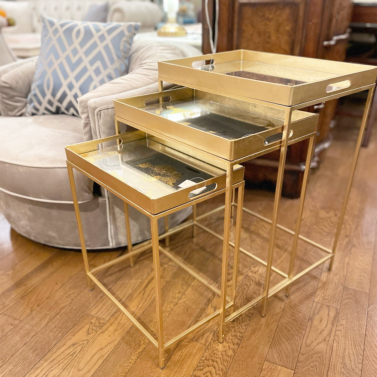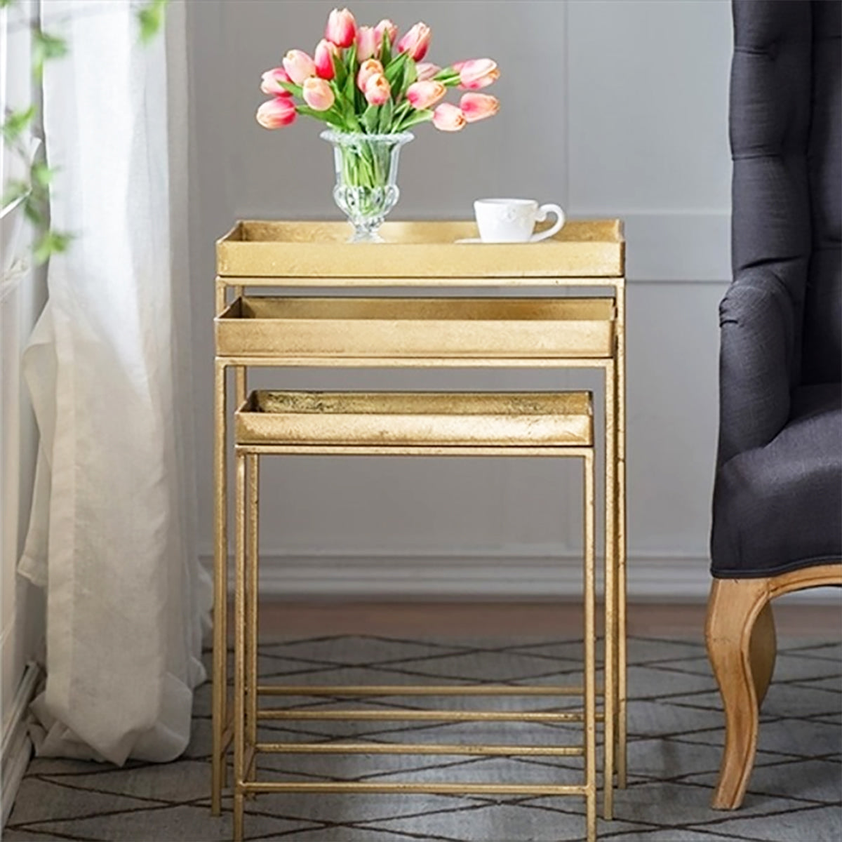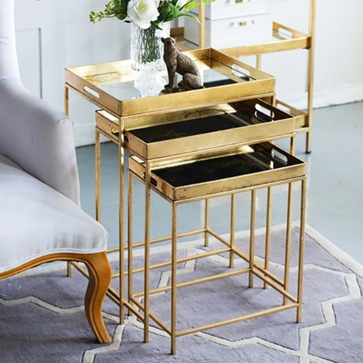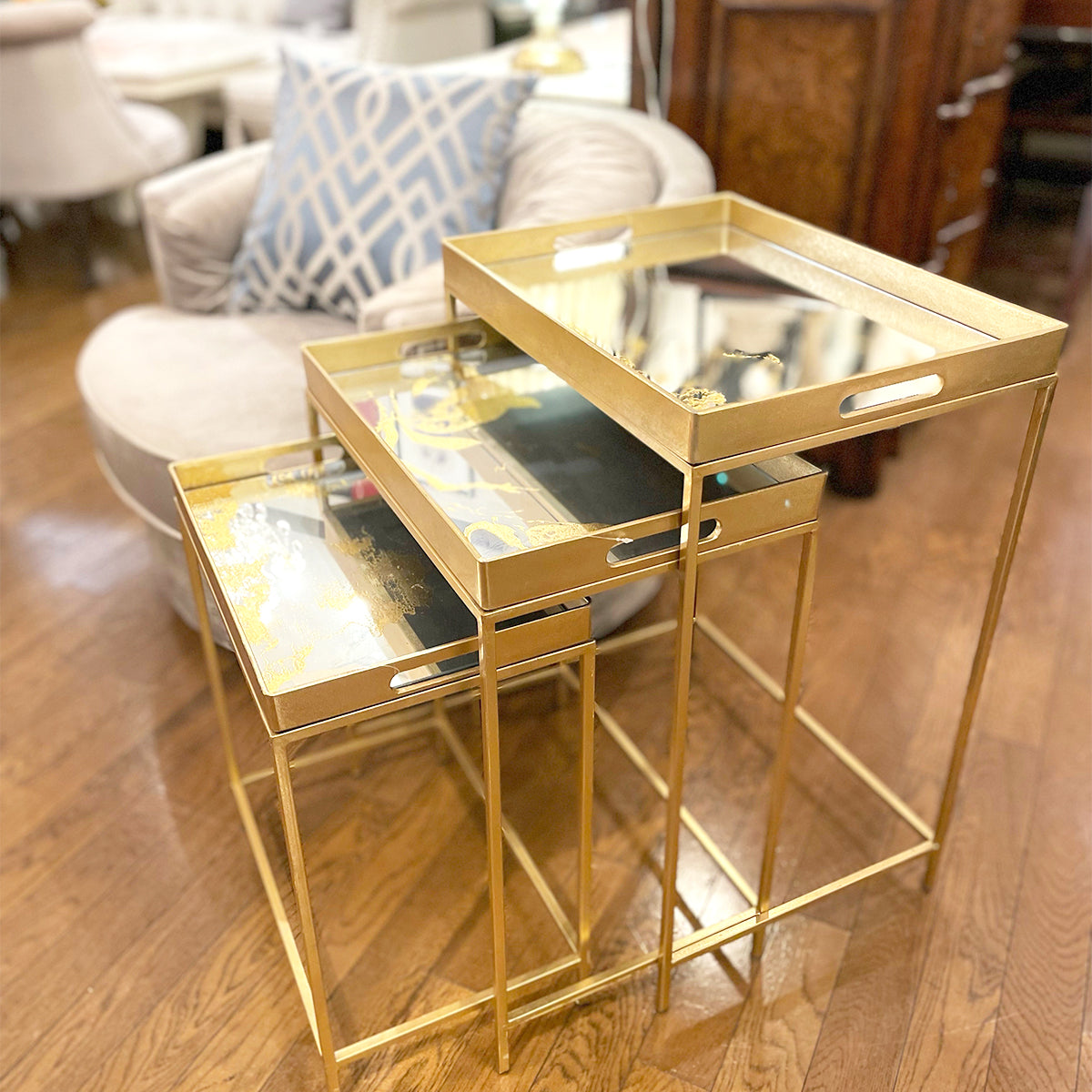 ネストテーブル/ゴールドモダン 3Pセットの便利なサイドテーブル