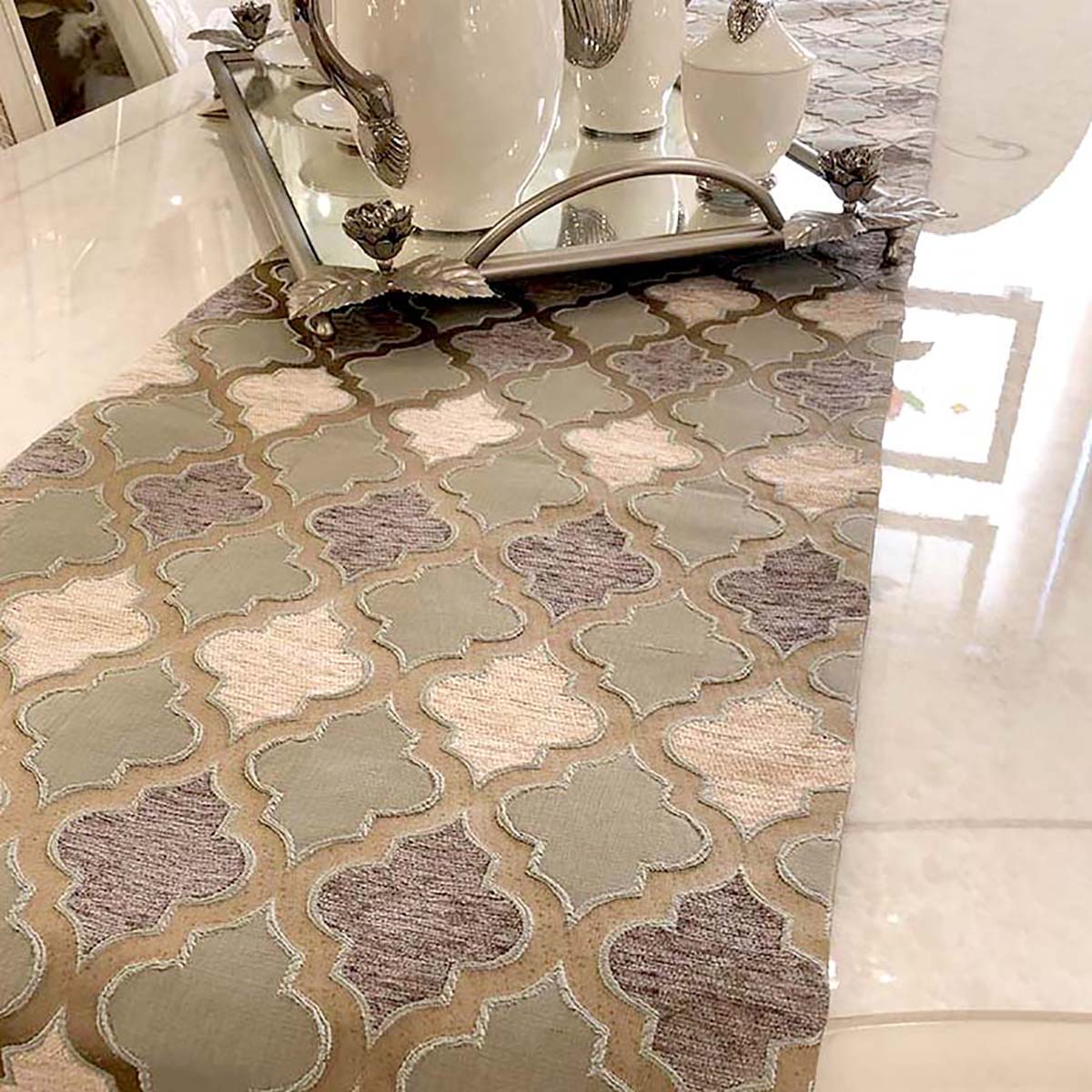 テーブルランナー(200cm)サイズ。おしゃれでエキゾチックなモロッカン柄がテーブルをおしゃれに演出します。独特のパターン柄と淡いくすみカラーでどんな色のテーブルにもマッチングします。