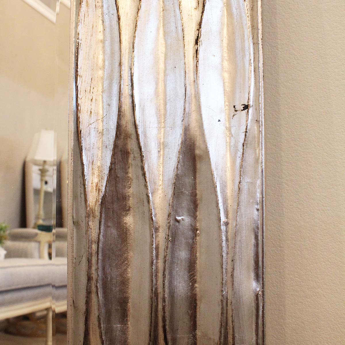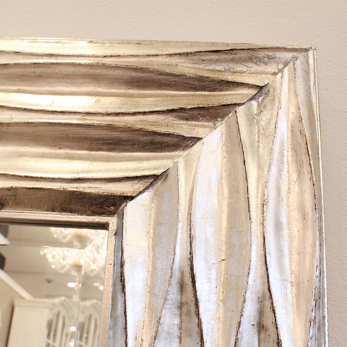モダンでスタイリッシュなデザインミラー(シルバー)が入荷しました。インパクトのある波型のモチーフがモダンなおしゃれミラーです。フレームはアンティーク調のシルバー塗装で、凹凸のある波型フレームは陰影を出してくれるので立体感が生まれ、モダンで深みのあるかっこいい仕上がりとなっています。