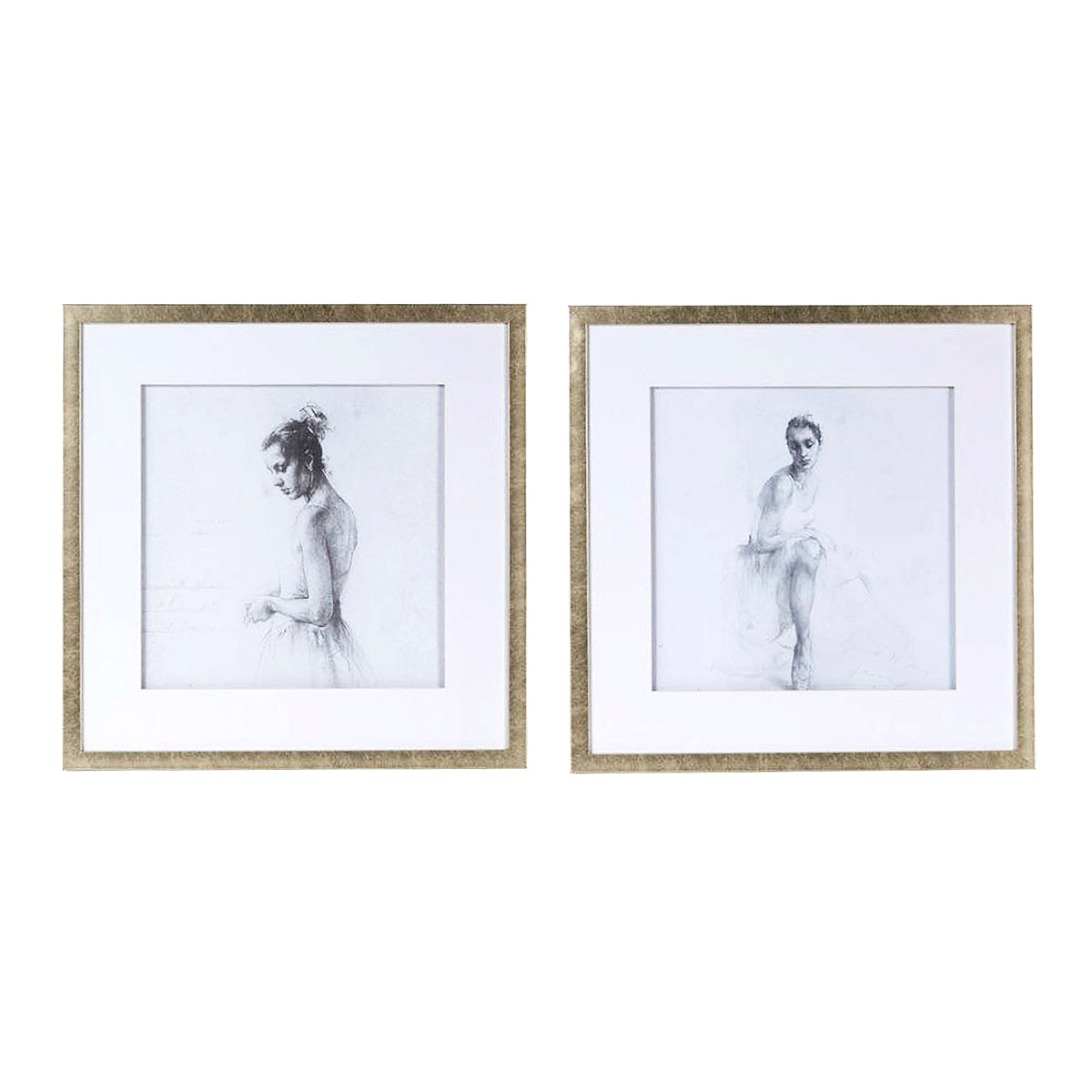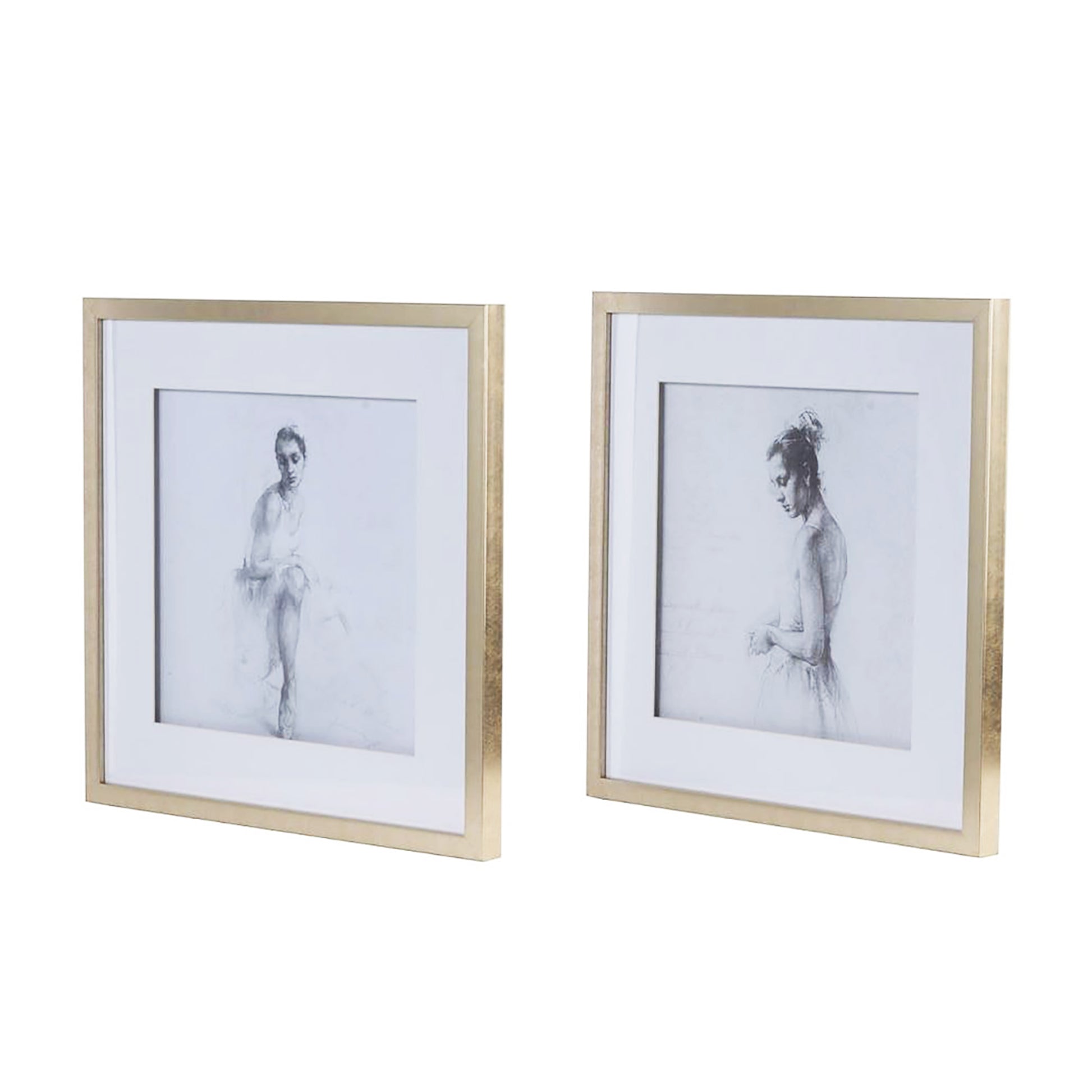 バレリーナ額絵/モダン絵画( ゴールド額装付き)2枚セット