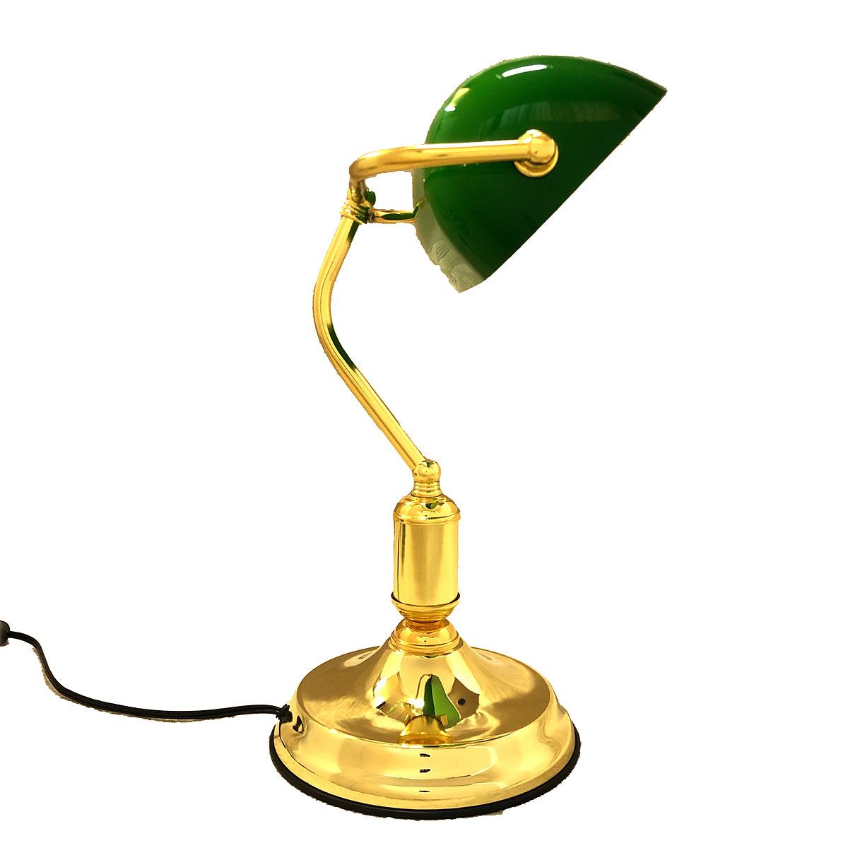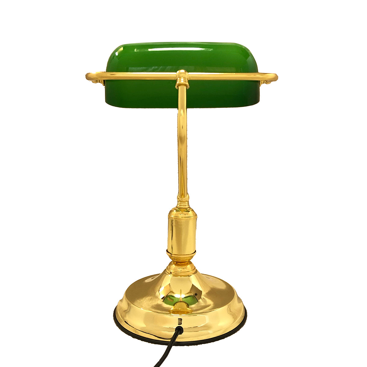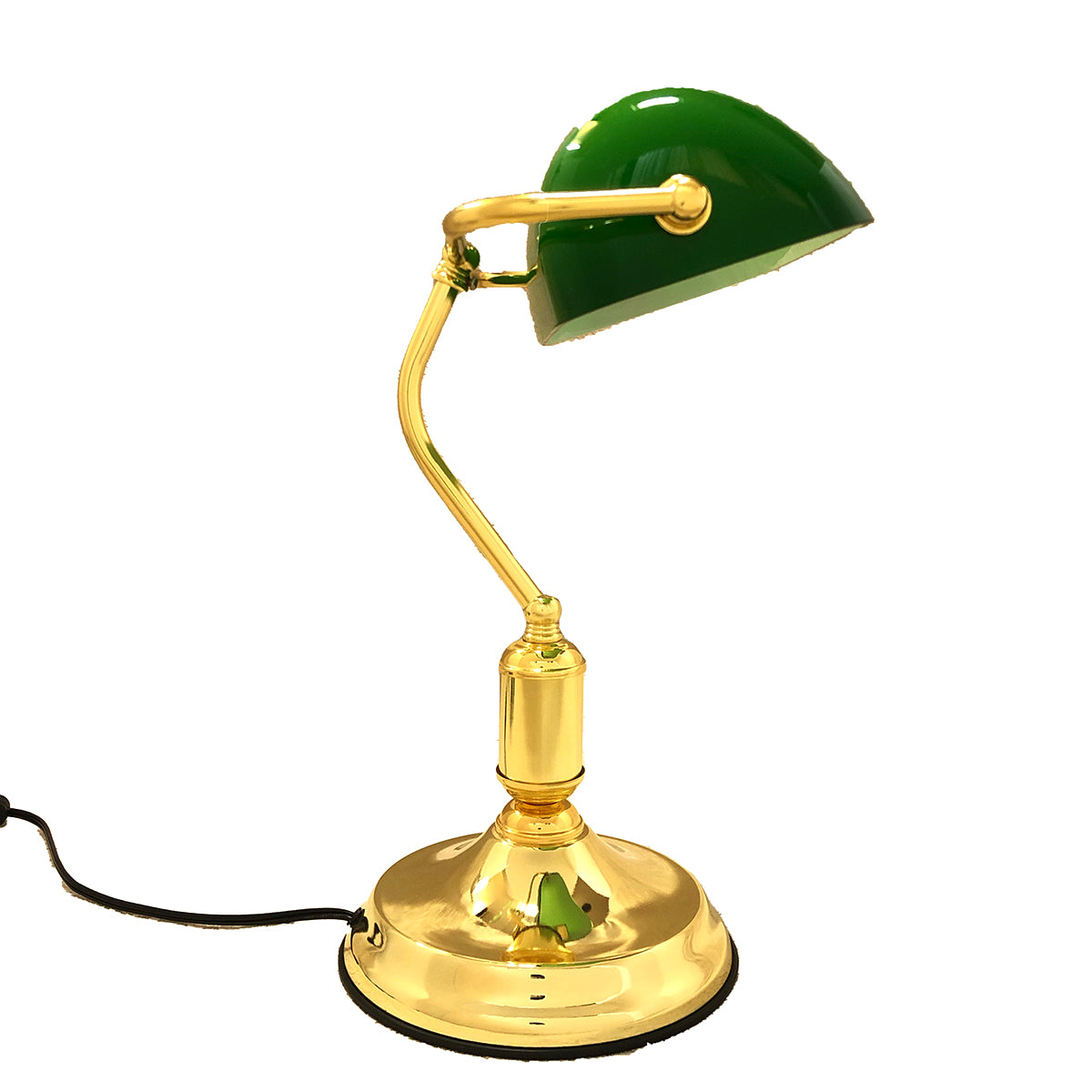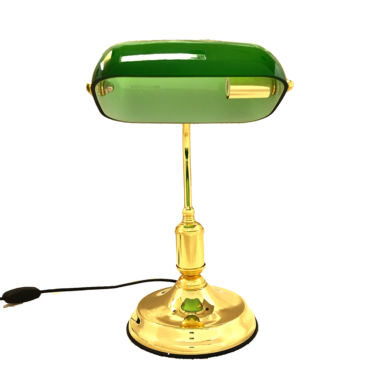 実店舗でも憧れのランプとして人気の高いバンカーズランプは、海外の映画やドラマでも社長室や会議室、図書館や裁判官のデスク前などでよく見かけることがありますね。真鍮のフレームにグリーンのガラスシェードが特徴です。