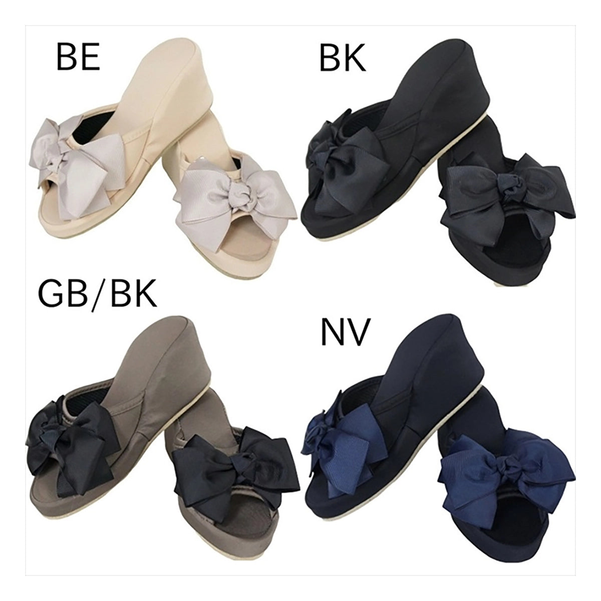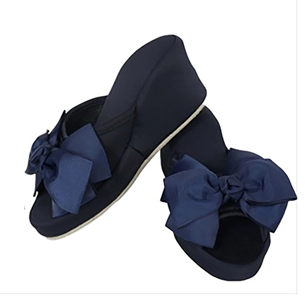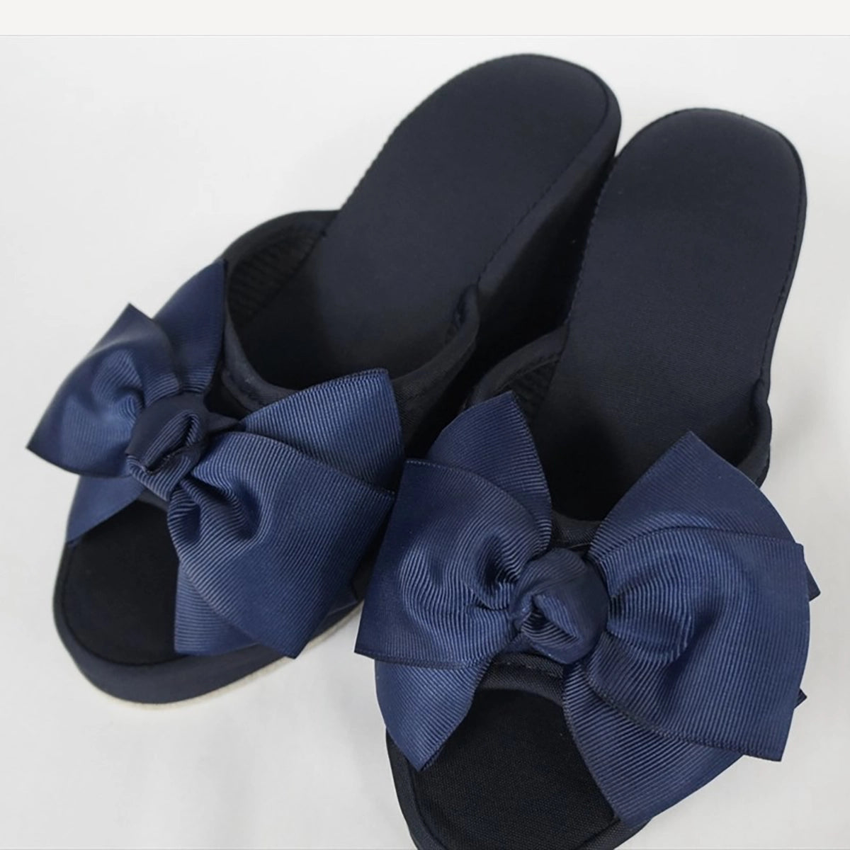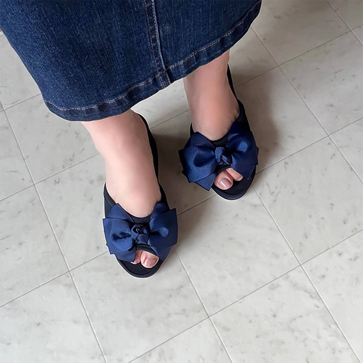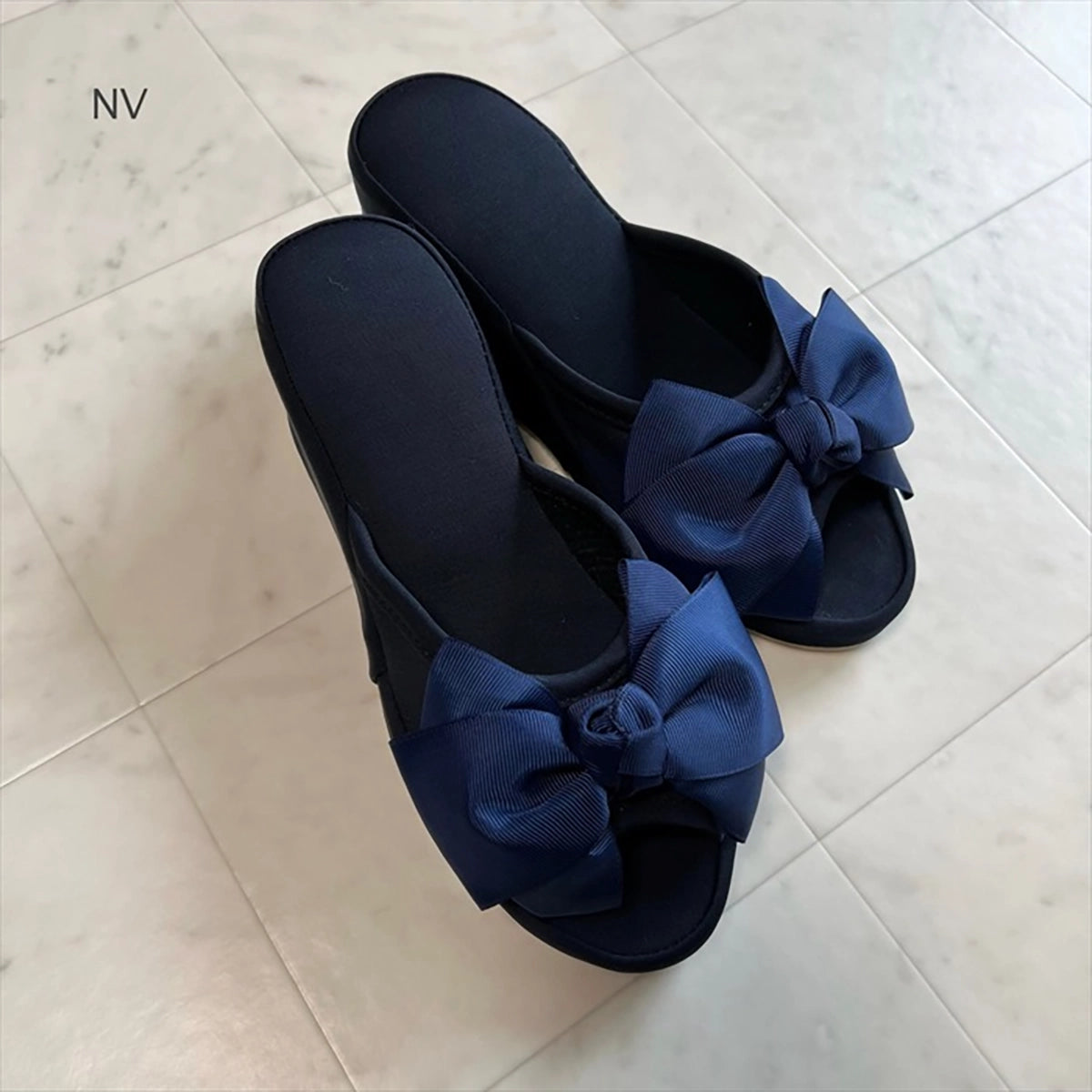 フォーマル 厚底スリッパ(ネイビー)/ 大きなリボンと高ヒールで美脚効果大 サロン仕様 学校行事にも