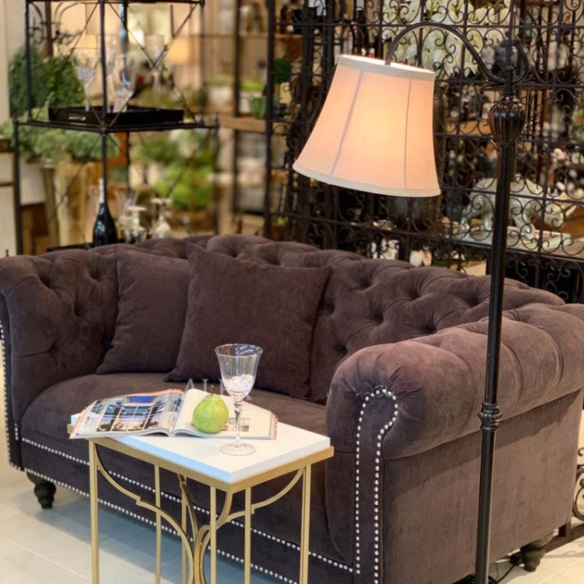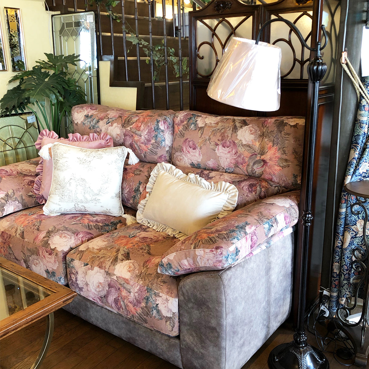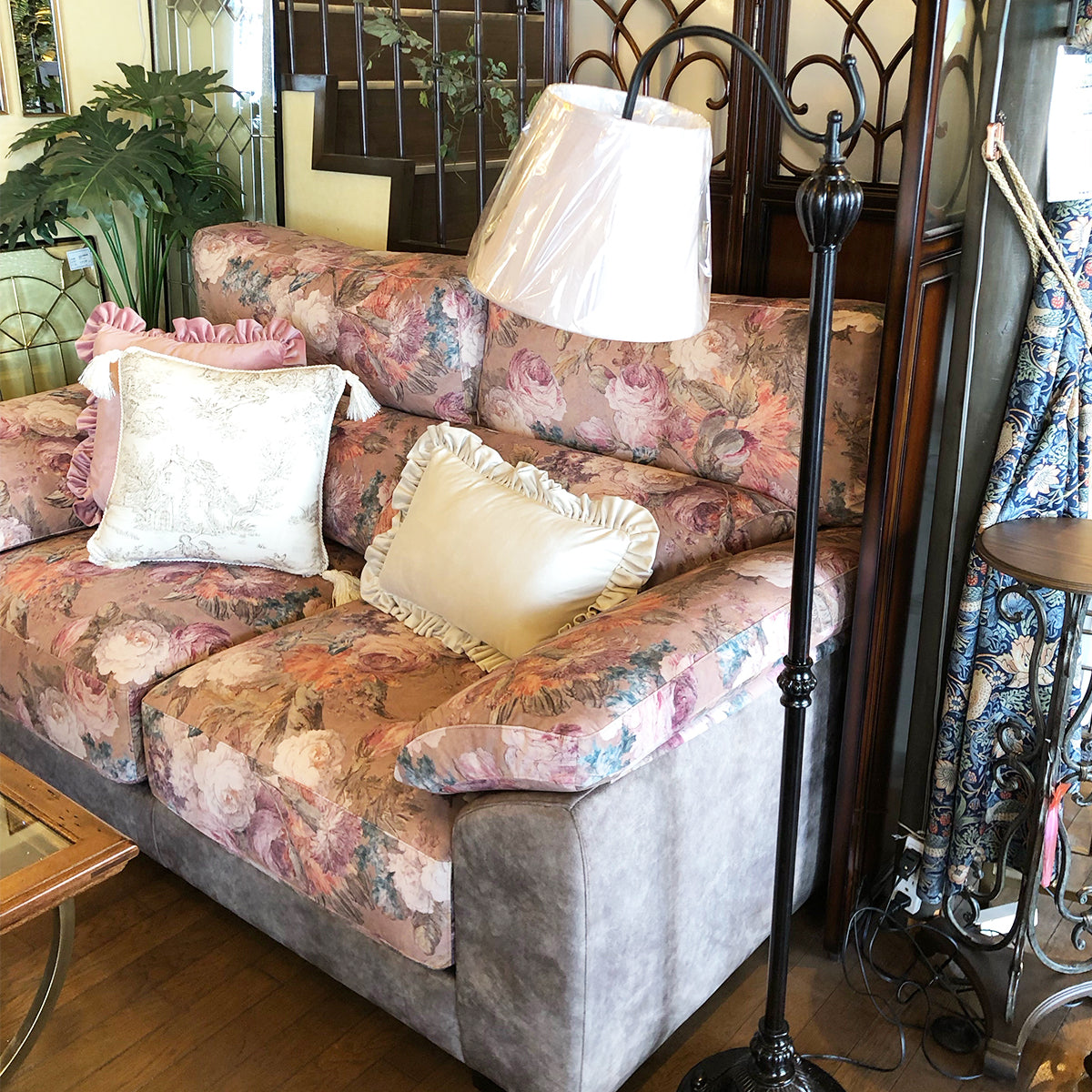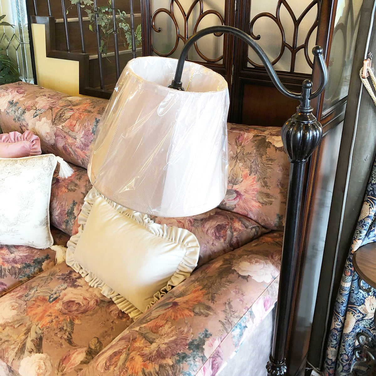 シェード付きのレトロなフロアランプが入荷しました。映画のワンシーンに見られるようなクラシカルで海外らしいデザインランプです。