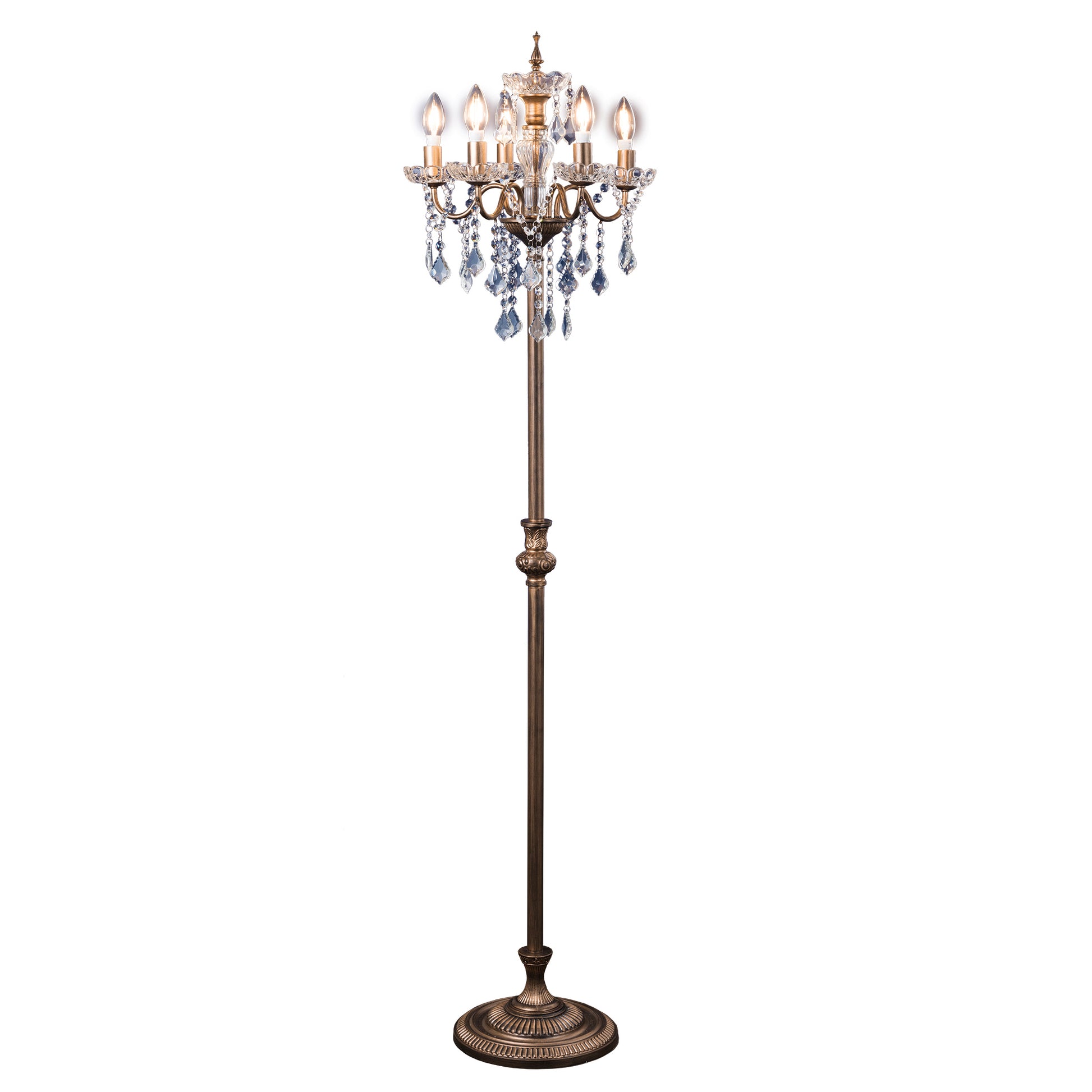 フロアランプ型シャンデリア5灯(アンティーク色)/ 置き式照明(LED対応)