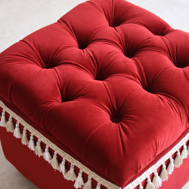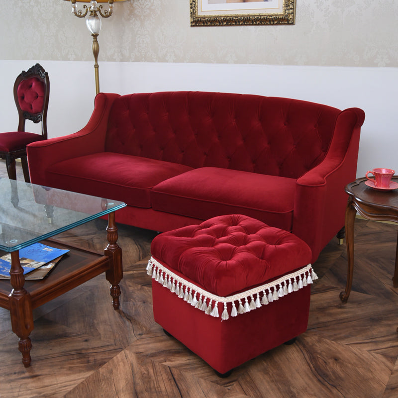 ベルベッド スツール赤 / タッセルが映えるクラシックでホテルライクなインテリアに【送料無料】