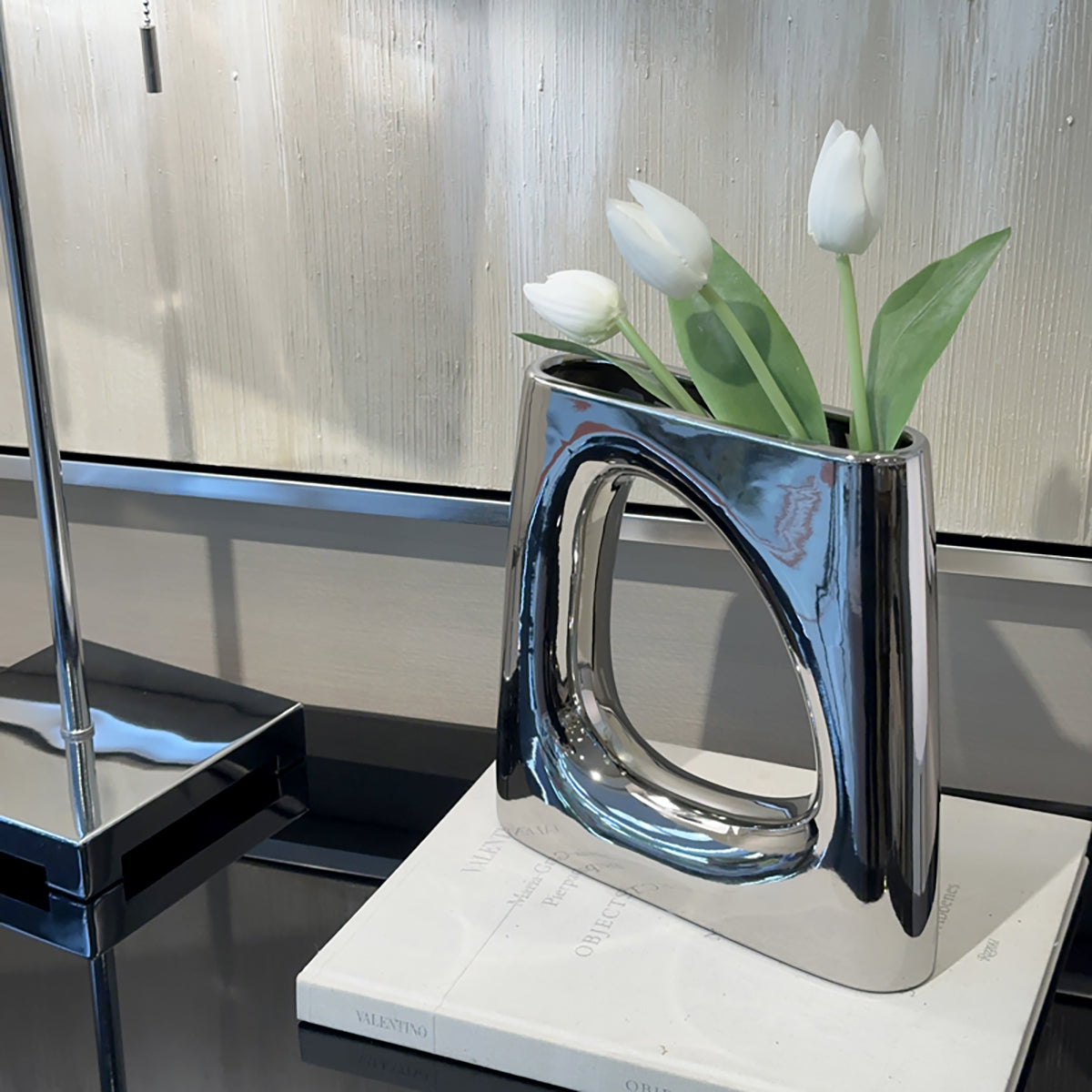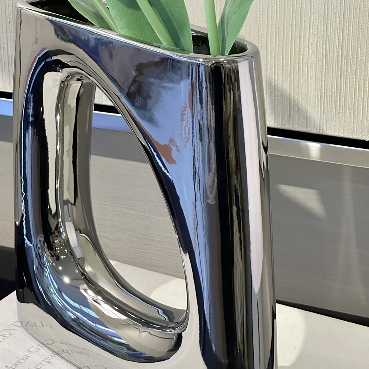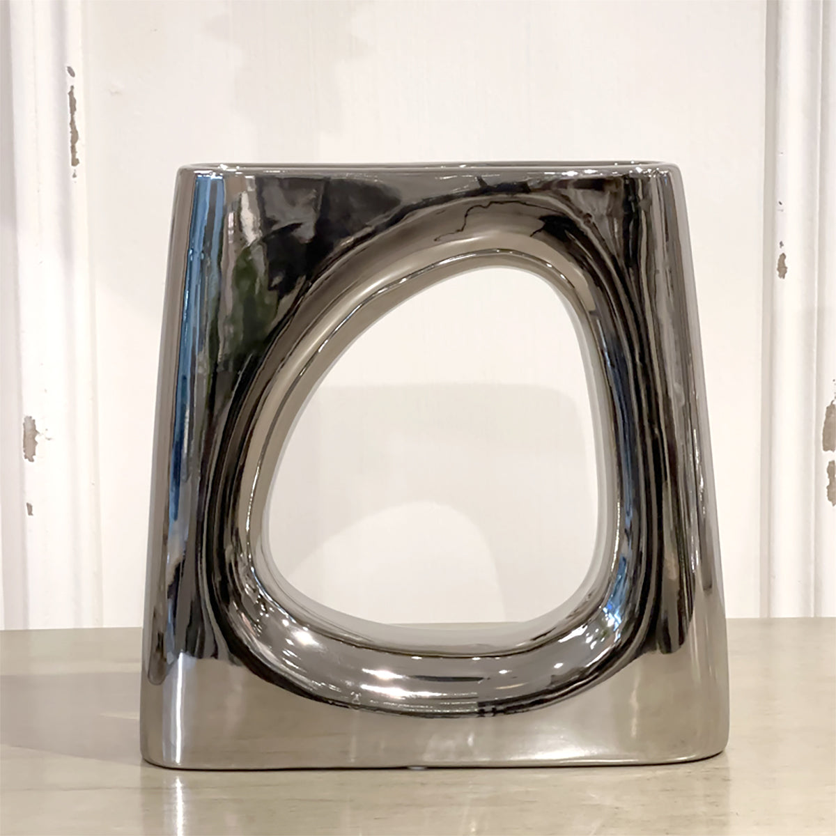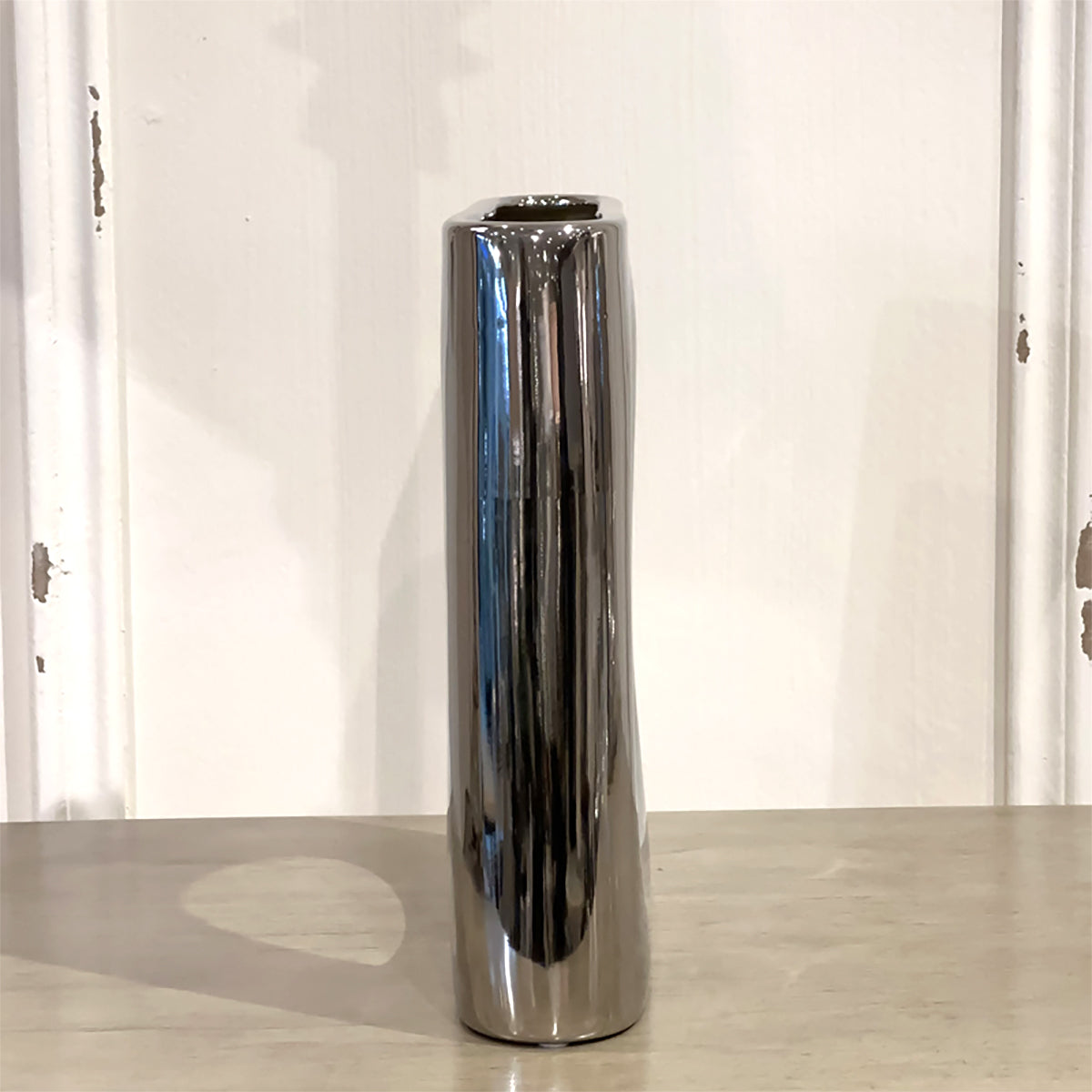 ベースオブジェ/おしゃれなインテリア飾りになるメタリックシルバーの花瓶M