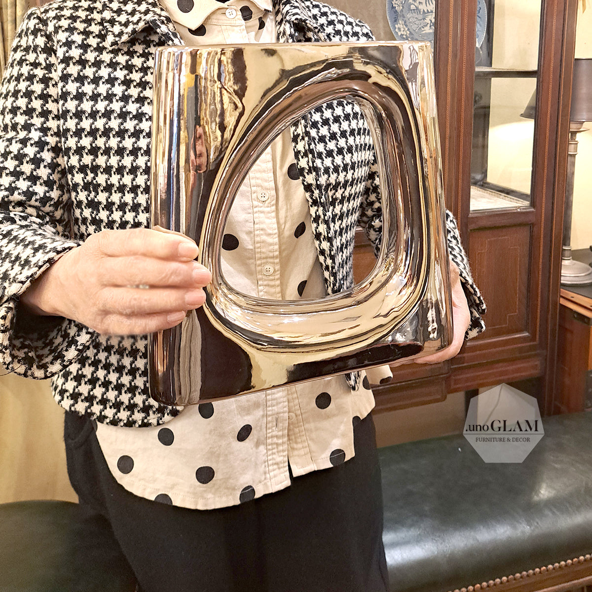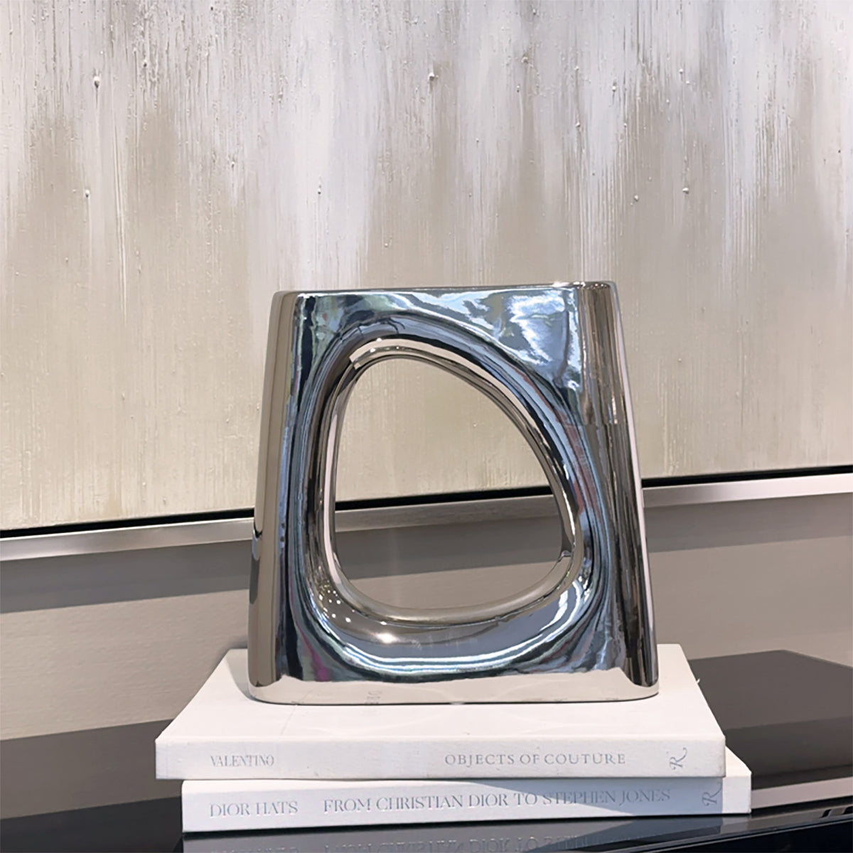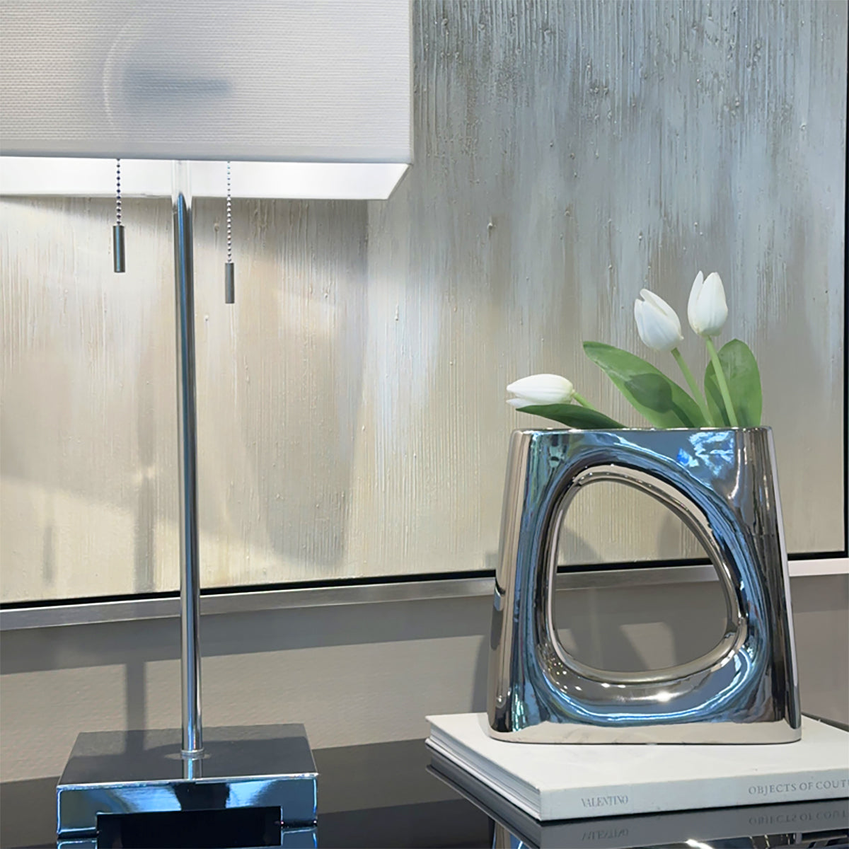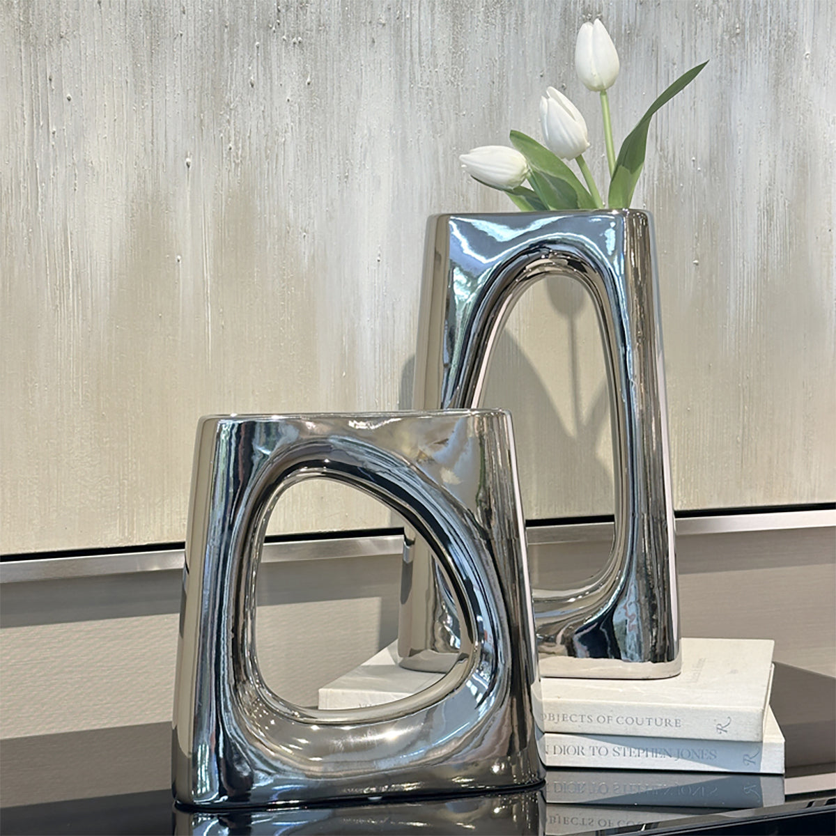 ベースオブジェ/おしゃれなインテリア飾りになるメタリックシルバーの花瓶M