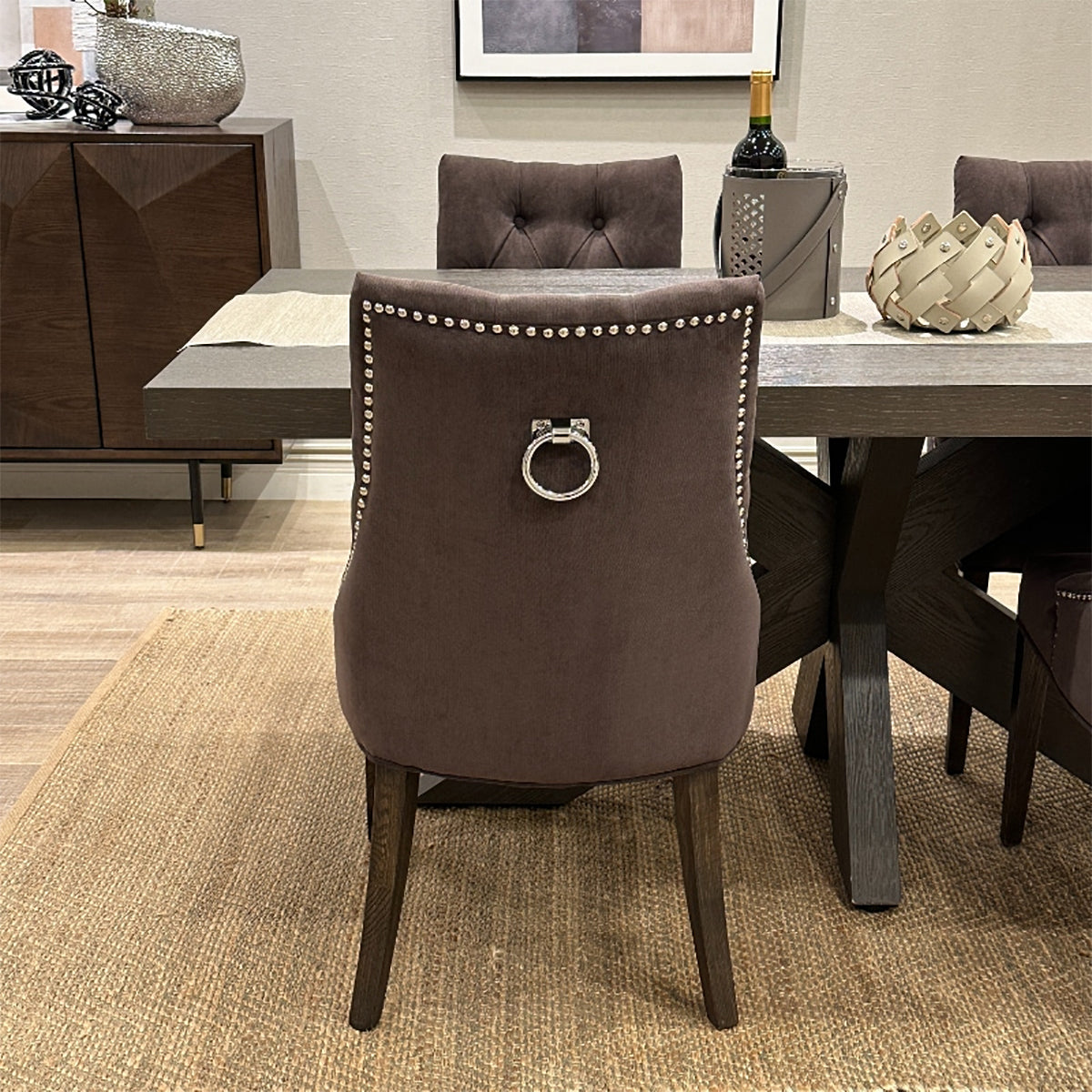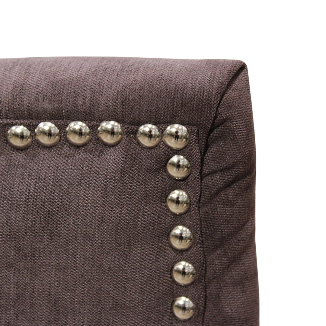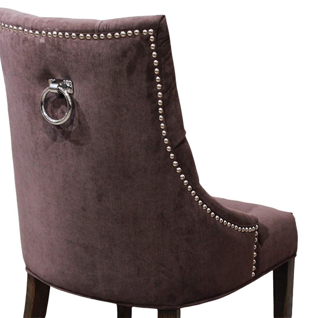 一押しは、背面からの見え方。ベルベット生地に映えるクールなスタッズと、ワンポイントのリング。背中まで美しい、まさに“背面美人”なチェアです!空間に合わせて選べる、カラー展開が豊富なのも嬉しいポイント。