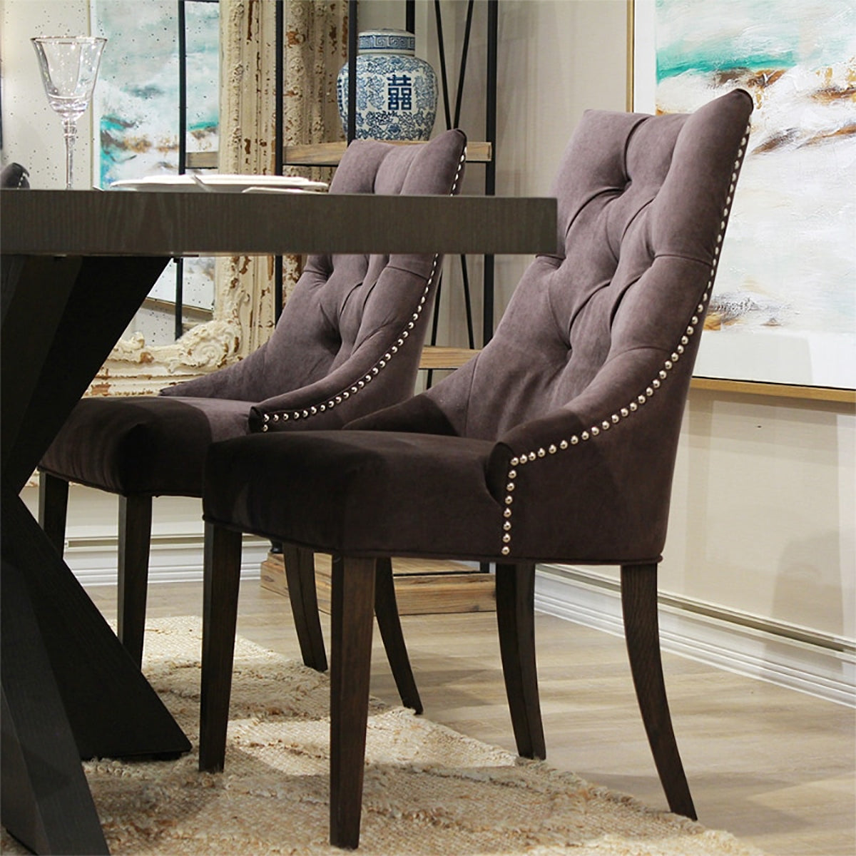 椅子・チェア おしゃれなリビングにぴったり/ 大人のモダンクラシックデザイン 【2脚セット】(ベルベットダークブラウン)