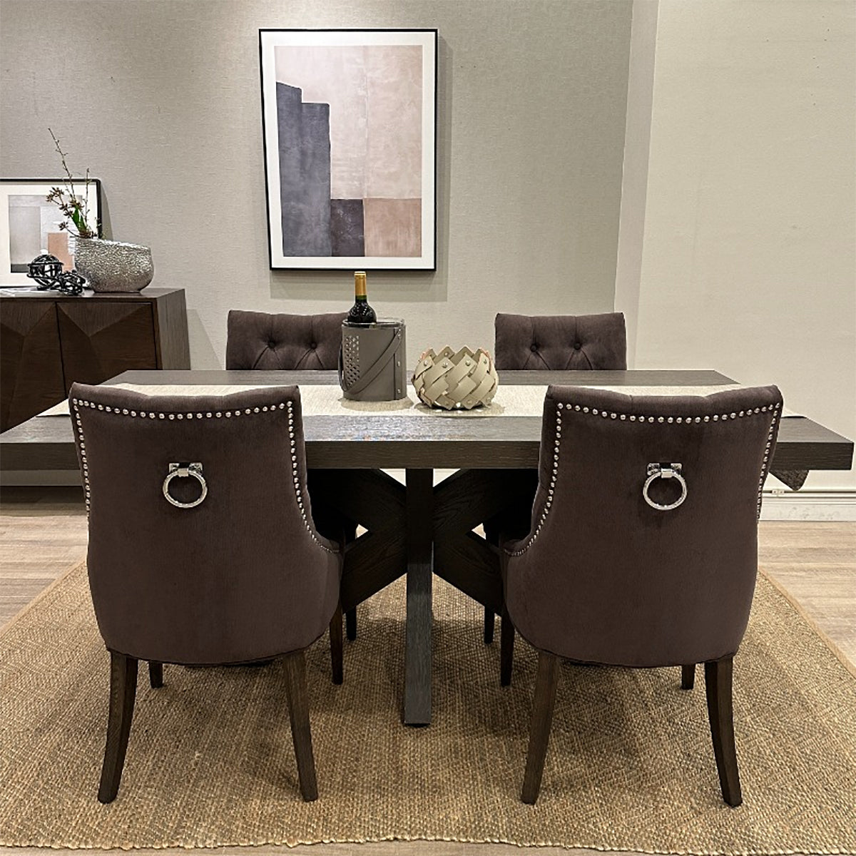 シルバーリングの取っ手がおしゃれ。チェアを引く仕草までも美しく演出します。