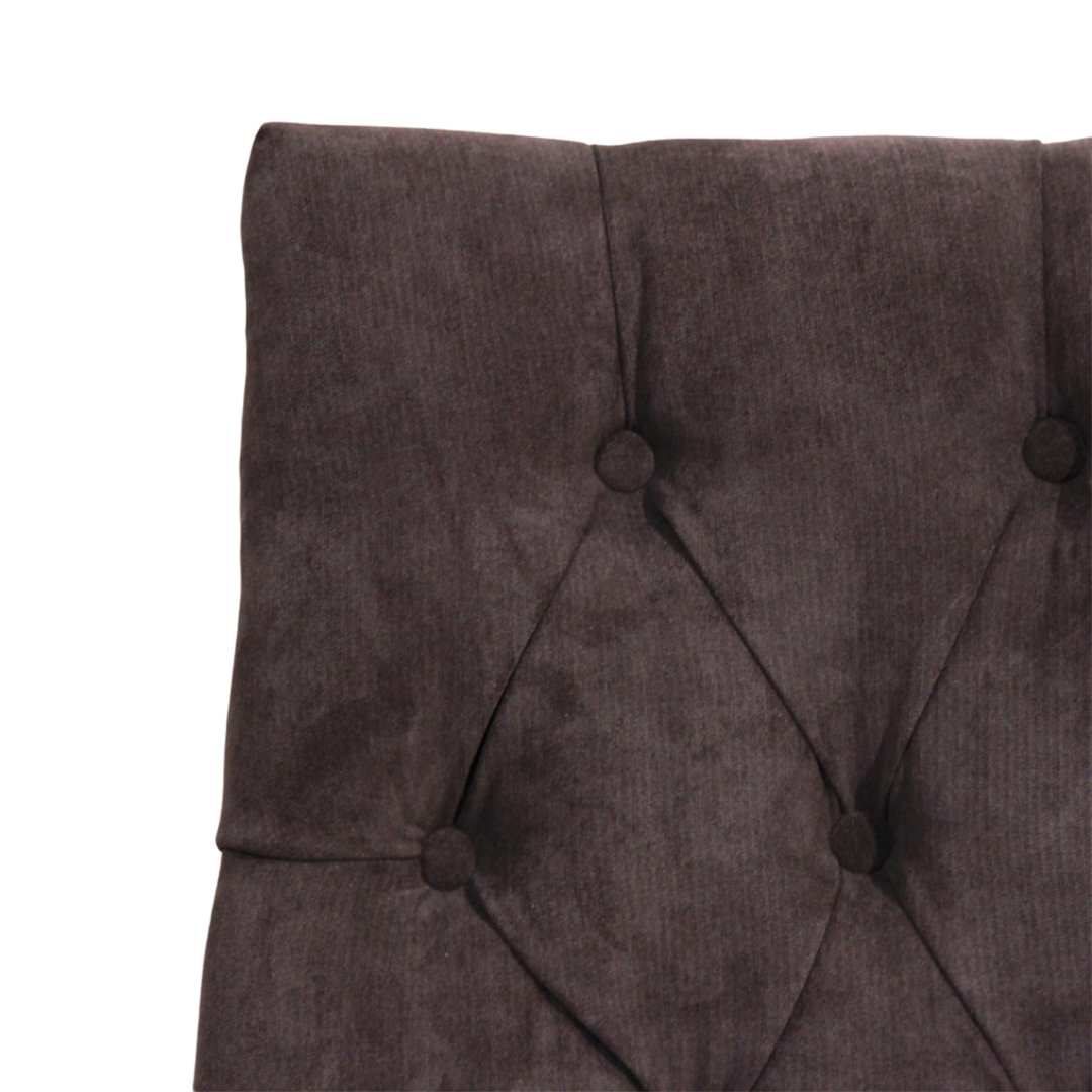 背もたれにはクラシックなボタン留めを施し、立体的で柔らかな陰影を生み出しています。
