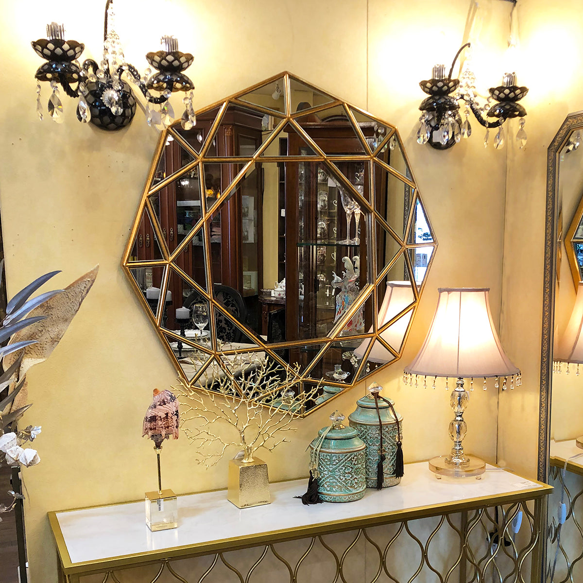モダンデザインのウォールミラー/ 八角形型のゴールドミラー