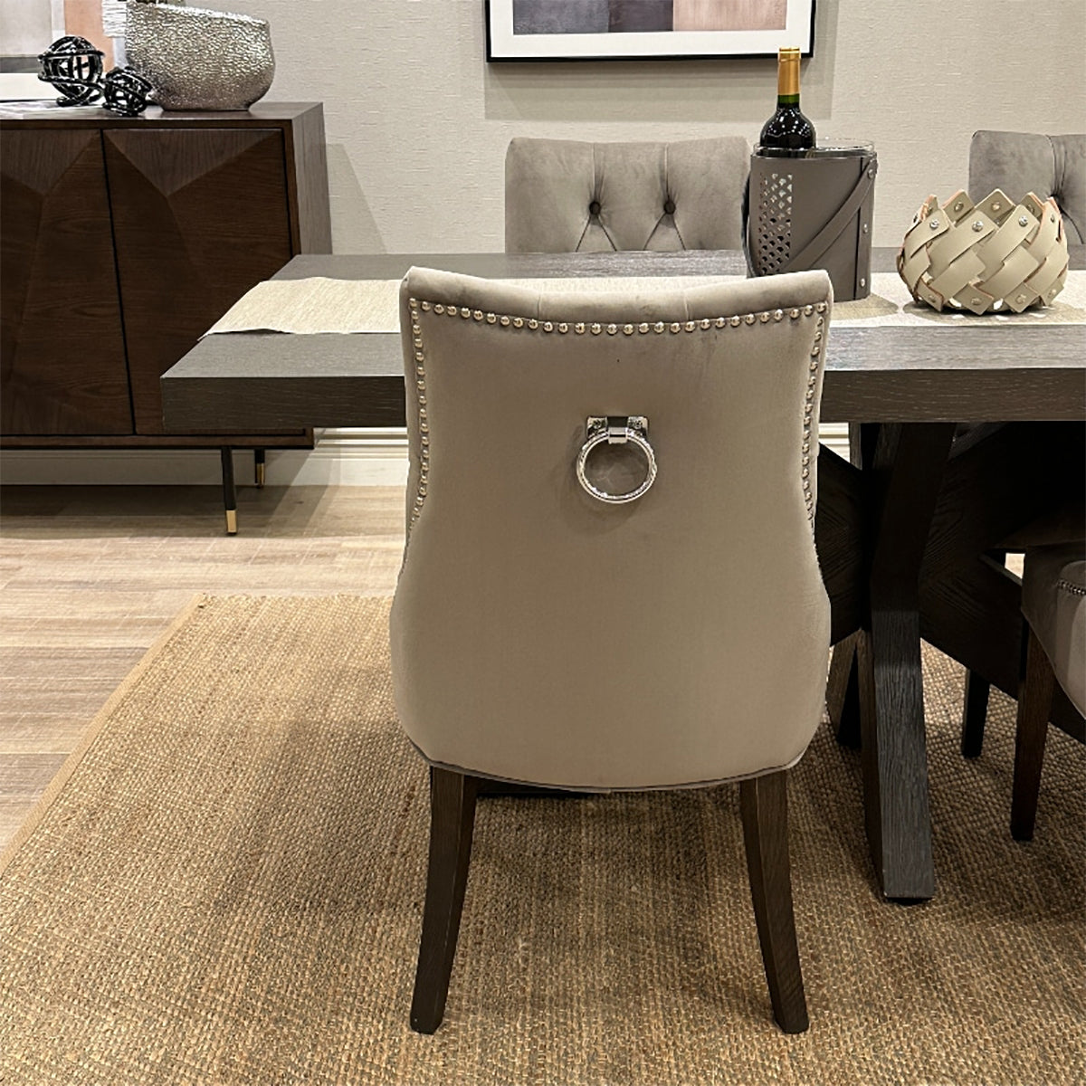 シルバーリングの取っ手がおしゃれ。チェアを引く仕草までも美しく演出します。