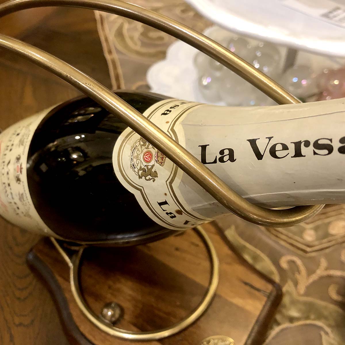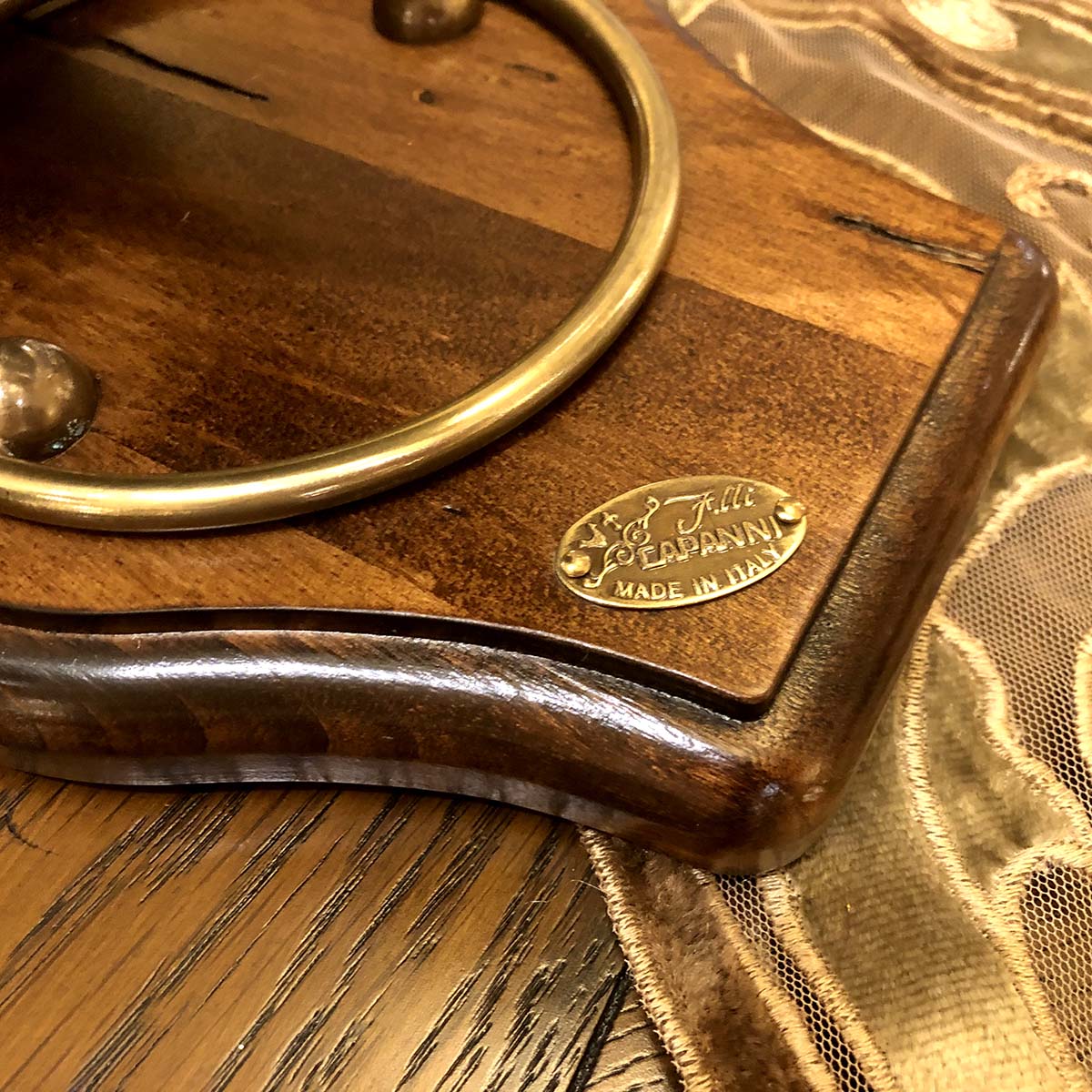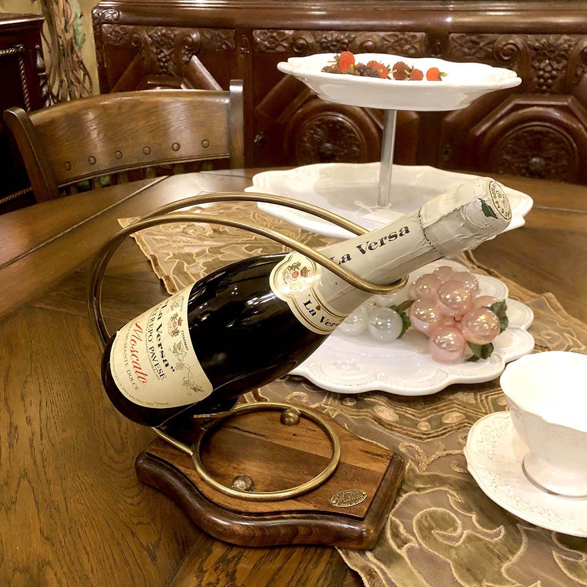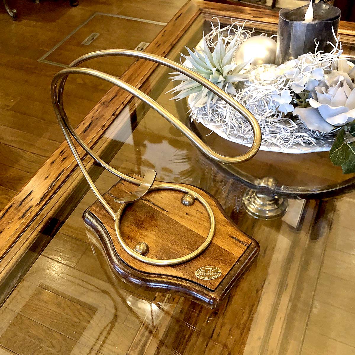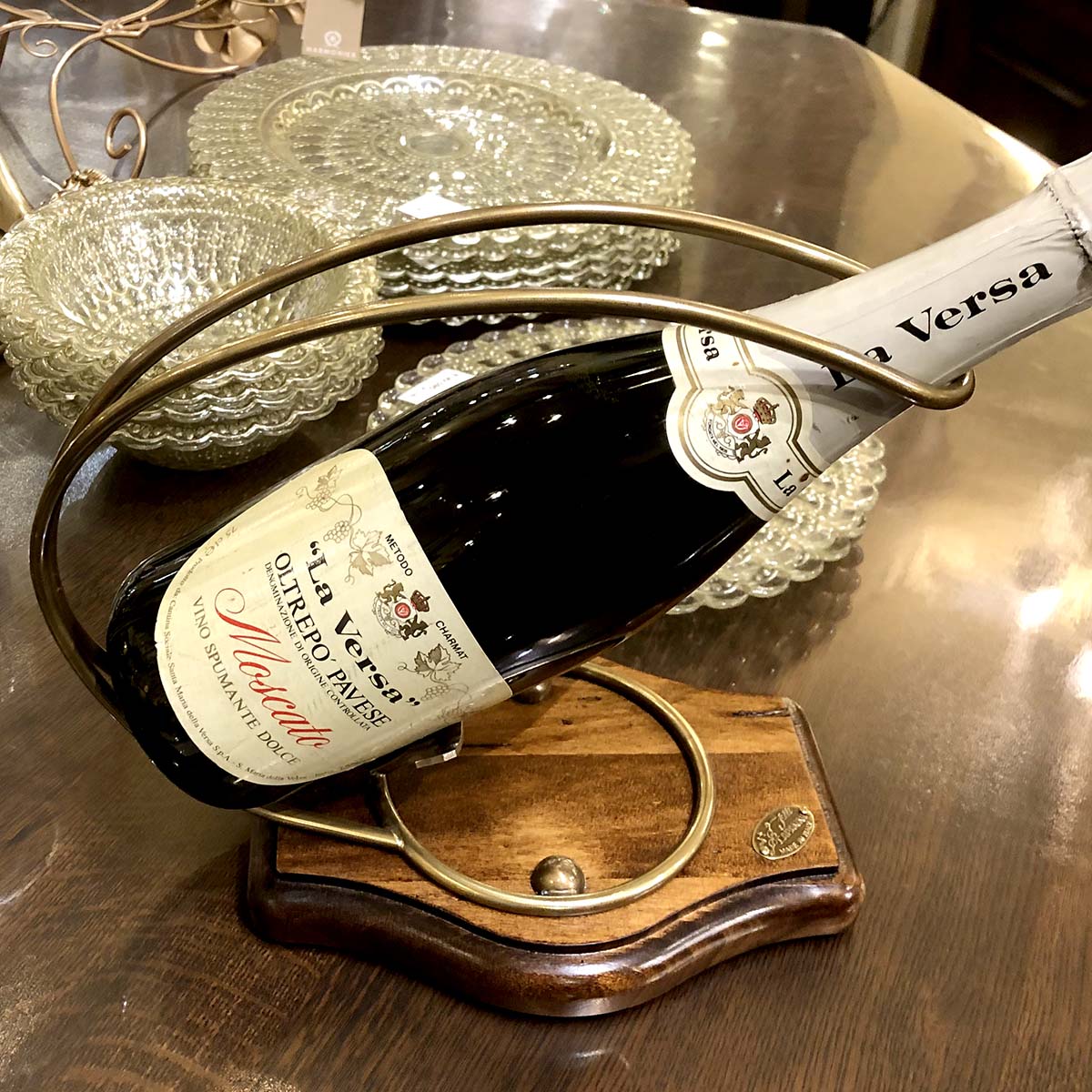 ワインラック(ワインスタンド)の1本用です。木製と真鍮のコンビがおしゃれなデザインで、木部にはイタリア製、フィレンツェのポプラ材の古木が使われています。