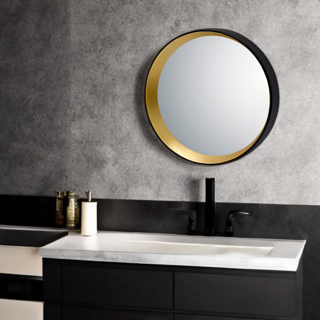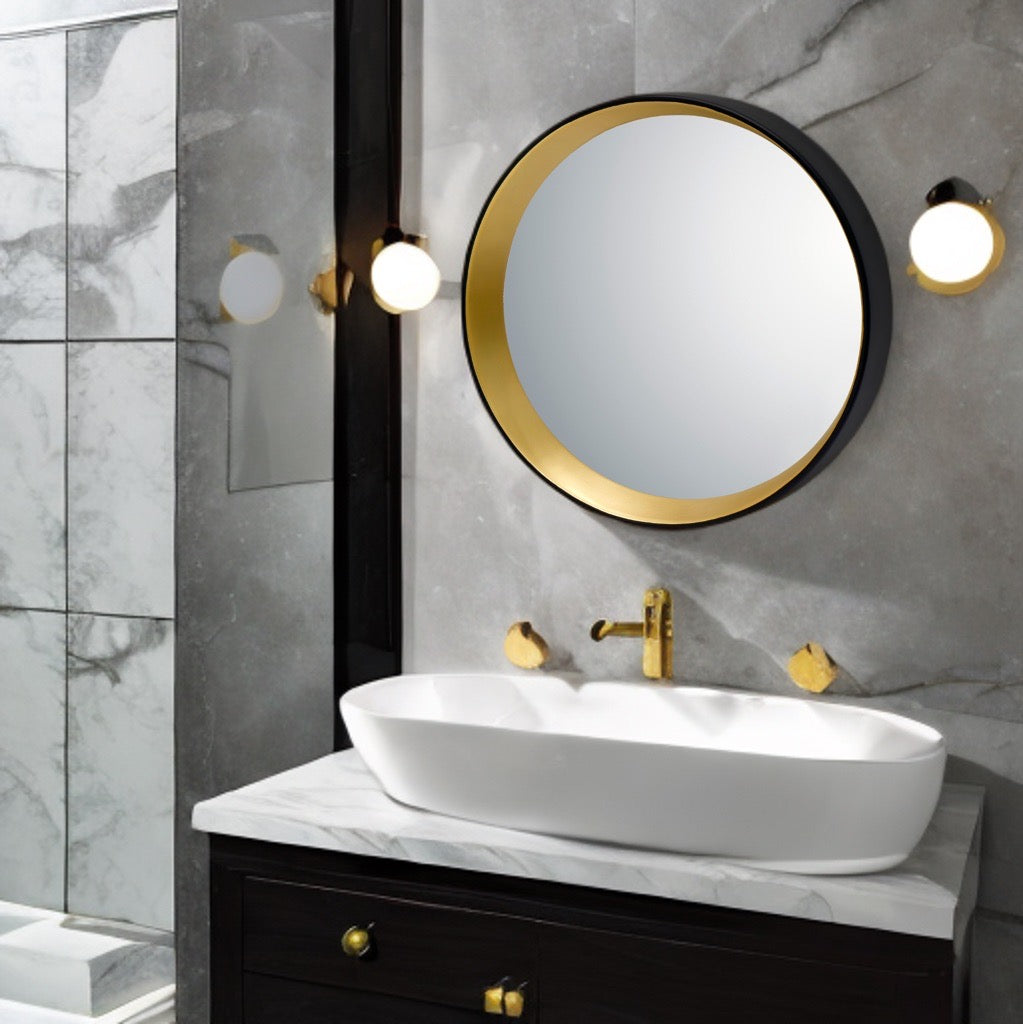 丸ミラー モダン大きめ Φ62.5㎝ /ゴールド&ブラック 洗面所などに