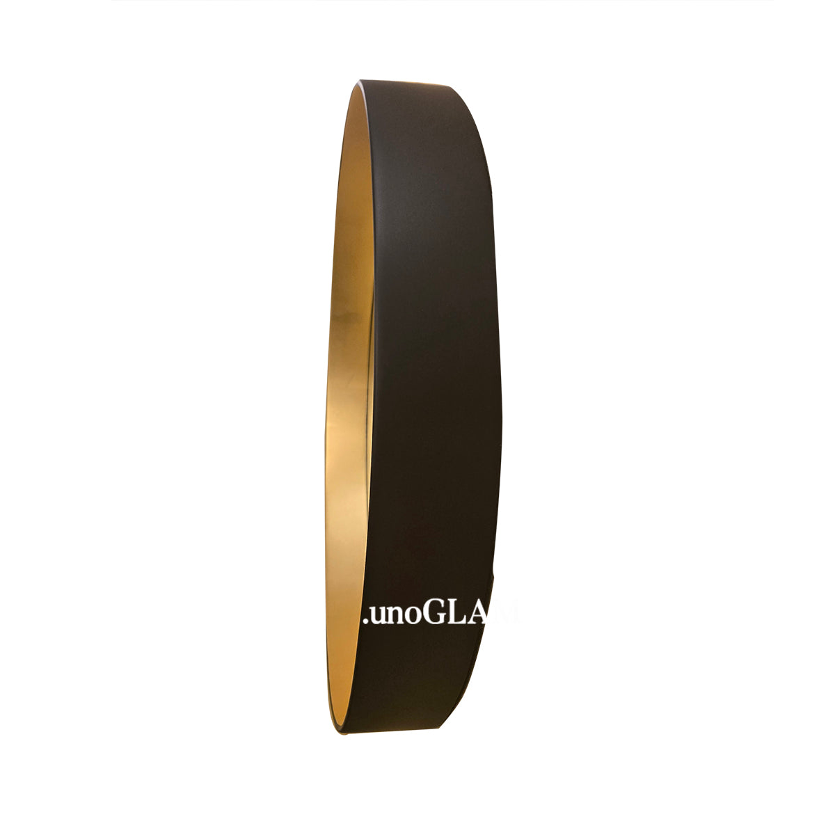 マットブラックで奥行7.5㎝の立体的なフレームの内側は、アンティーク調に仕上げたゴールドで、ブラックとのコントラストが際立つモダンなデザイン。