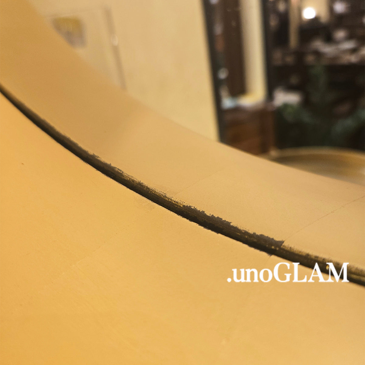 シンプルなデザインだけど、ゴールドとブラックのリッチカラーの組合せがモダンでパンチのある丸ミラー。存在感を出したい場所におすすめです。