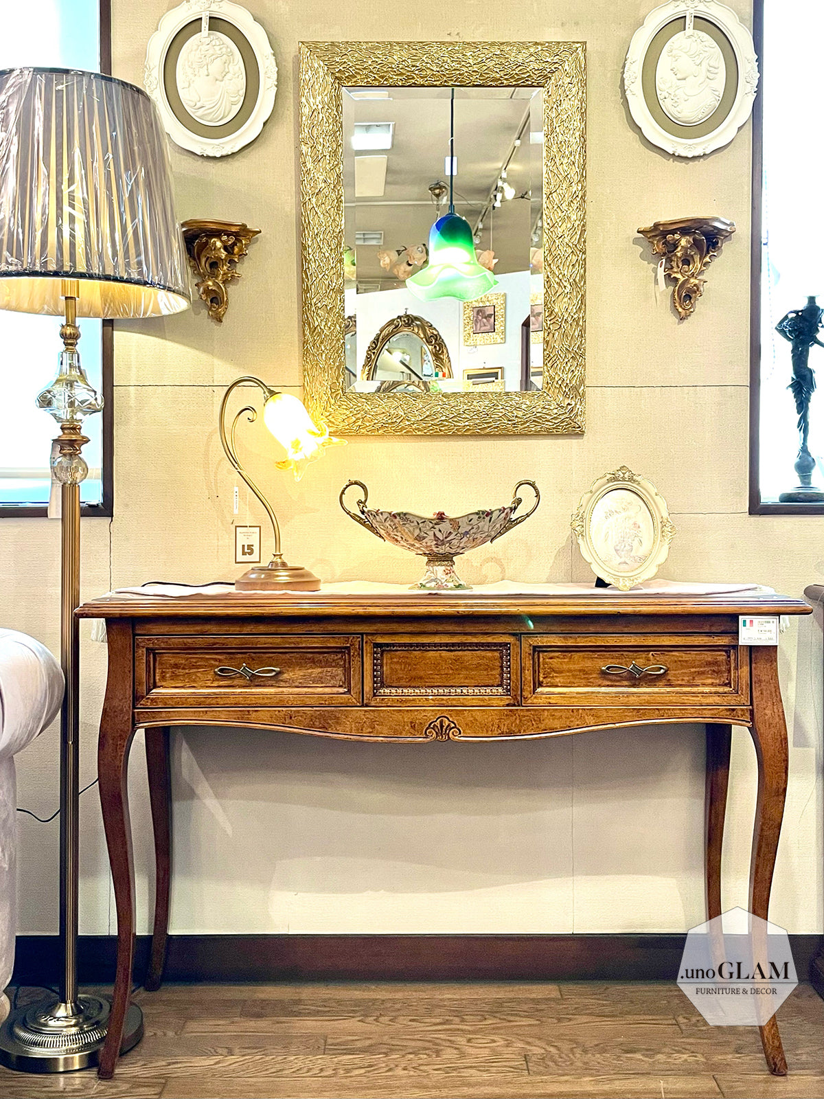 やはりイタリア製!と思わせるクラシックモダンなフレームデザイン。本場のイタリア職人が手掛けた芸術品とも言える上質なミラーは、際立つ存在感でお部屋を彩ります。