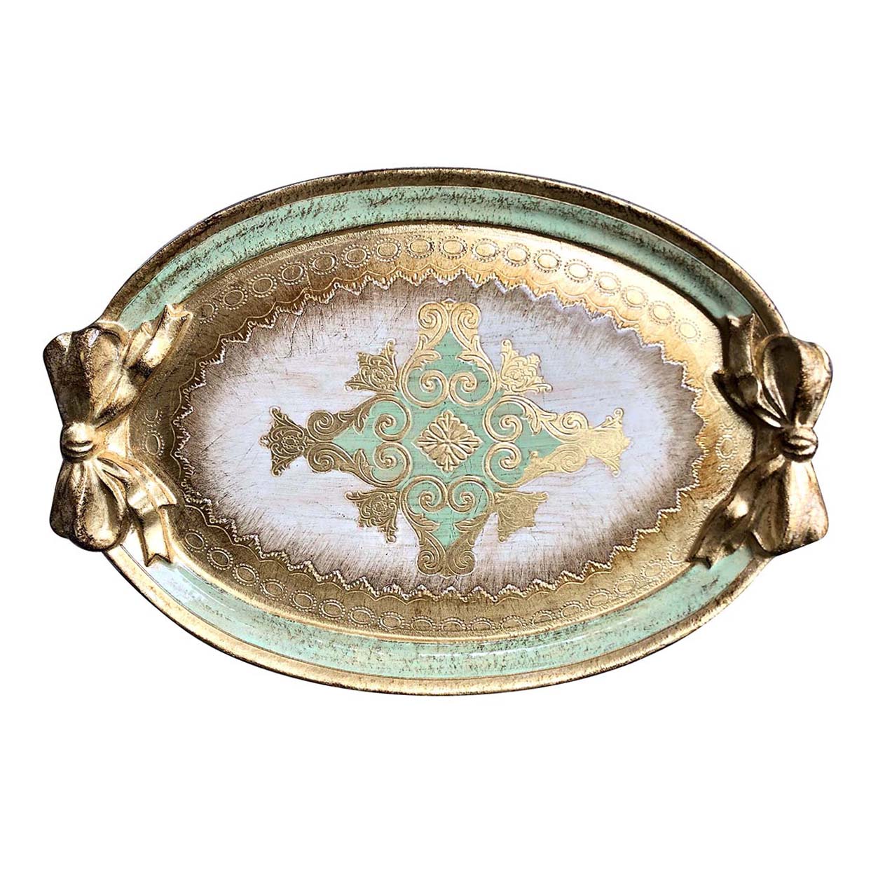 イタリア・フィレンツェの伝統的な型押し技法で作られたハンドメイドのトレーで、近年樹脂製のものが多い中、数少ない貴重な木製トレーです。1点ずつハンドペイントで絵付けされ、木製ならではの温かみのある質感が感じられます。