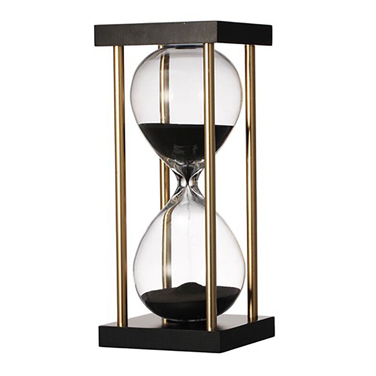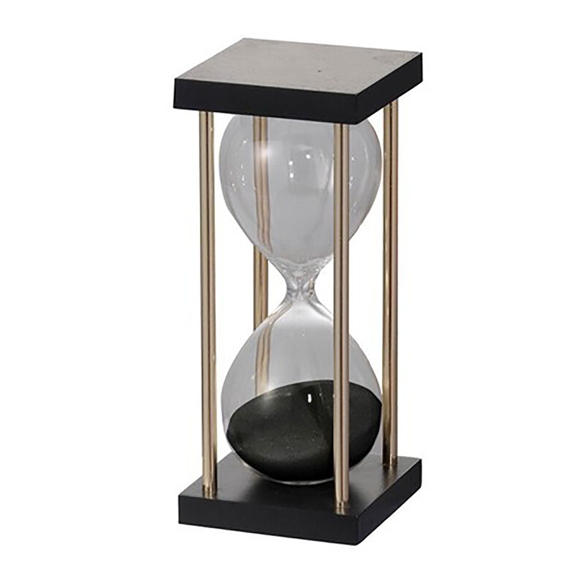 おしゃれなインテリアオブジェになる 砂時計です。ブラックとメタリック ゴールドの組み合わせが美しい砂時計は、シンプルモダンなデザインでおしゃれなインテリアとして重宝します。時間はおよそ15分。ゆったりと砂が落ちるおしゃれな砂時計は、眺めているだけで心が癒されるされるリラックス効果も得られます。セクシーなグラムスタイルインテリアや、クラシックモダン、セレブリティインテリアに相性抜群です。