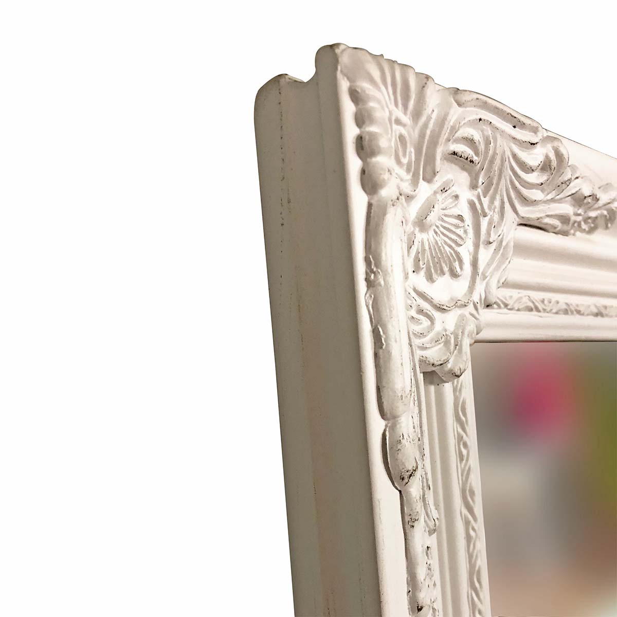 ウォールミラー白 /スタンド式 エレンガントなアンティーク調の自立式の姿見