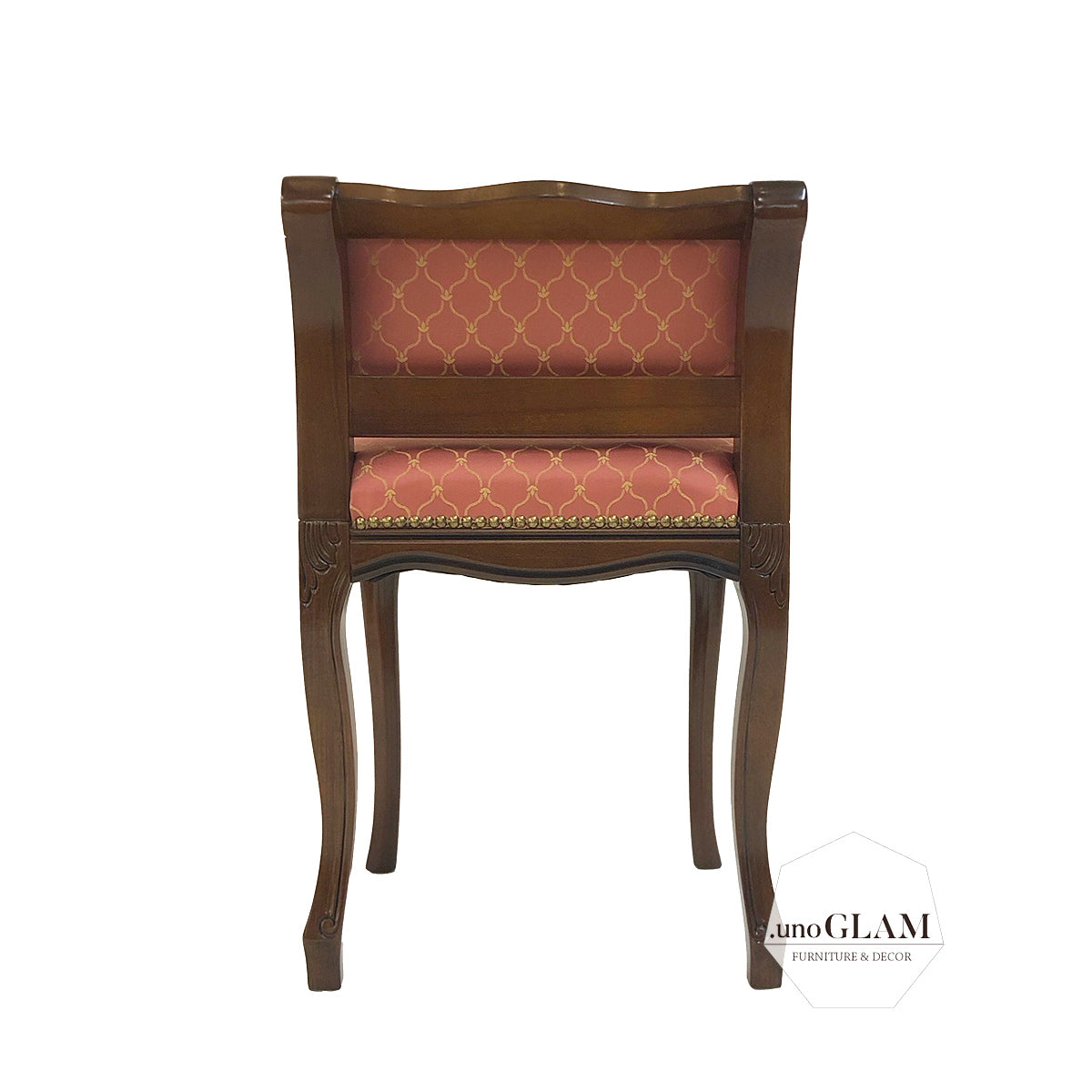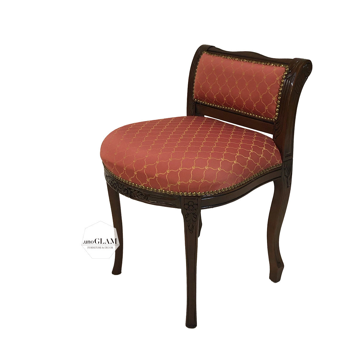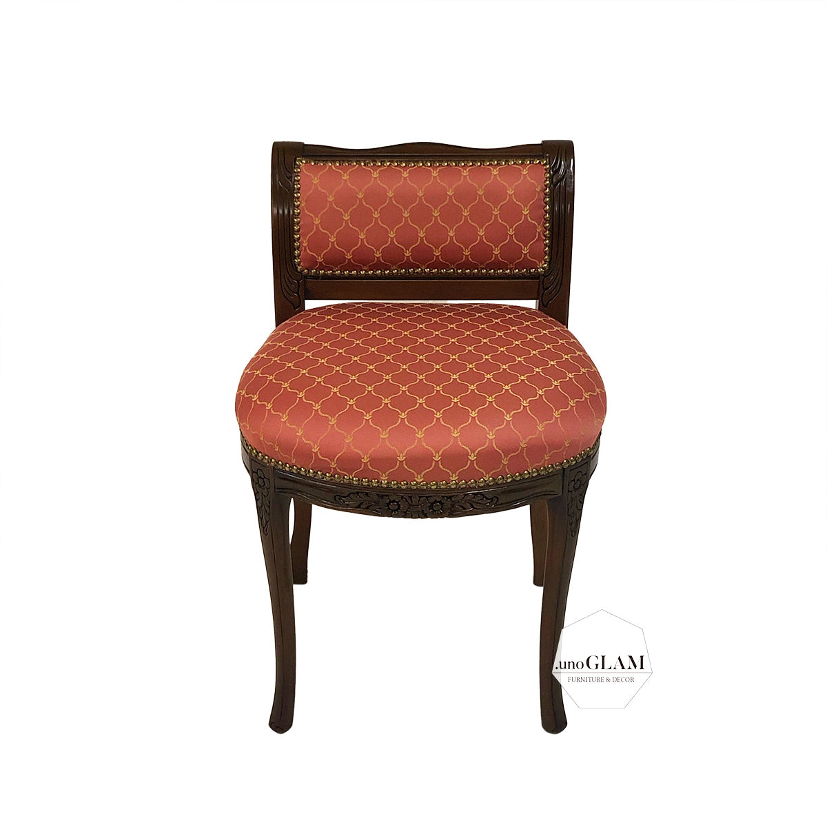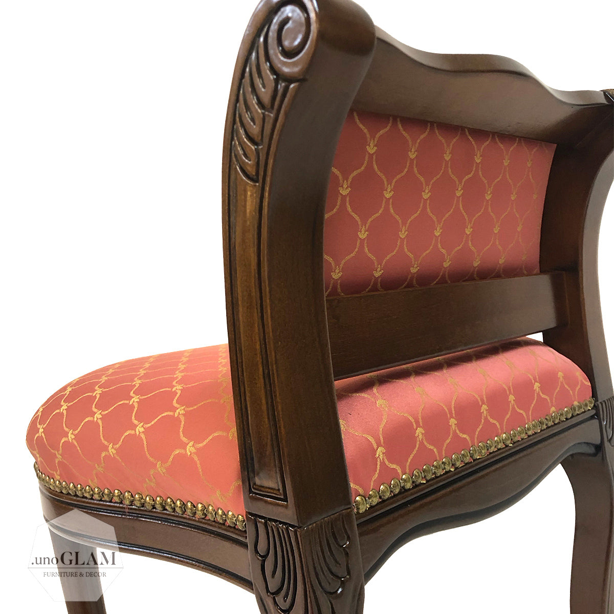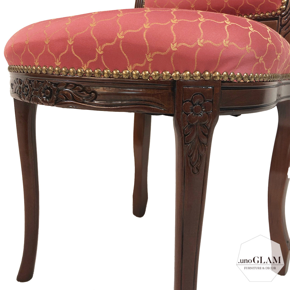 エンジ色の上品な張地と伝統的なイタリアンクラシックが愛らしい猫脚スタイルのチェア。ゴールドの格子模様がシンプルで上品な雰囲気を醸し出します。生地は張りがありパリッとした触り心地です。