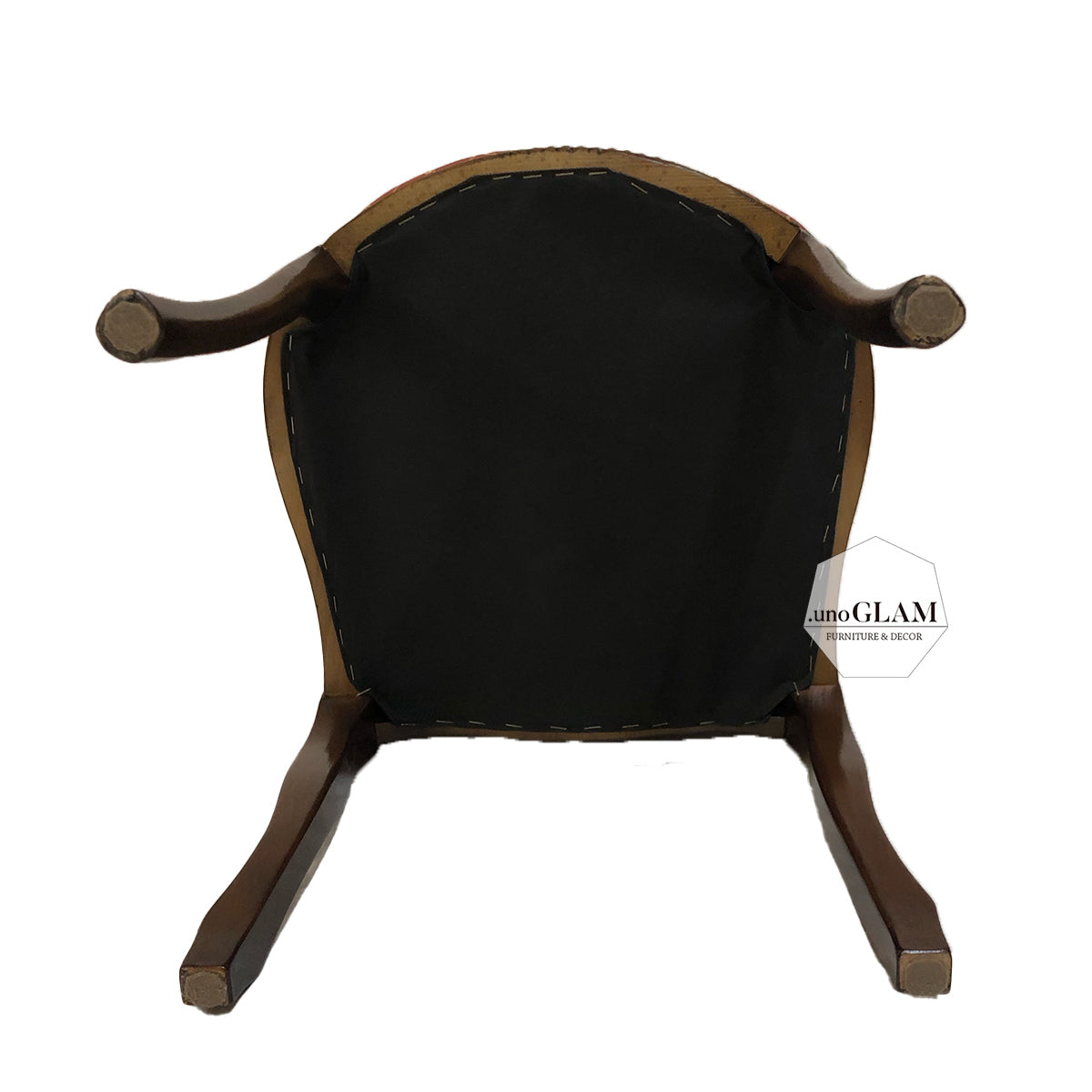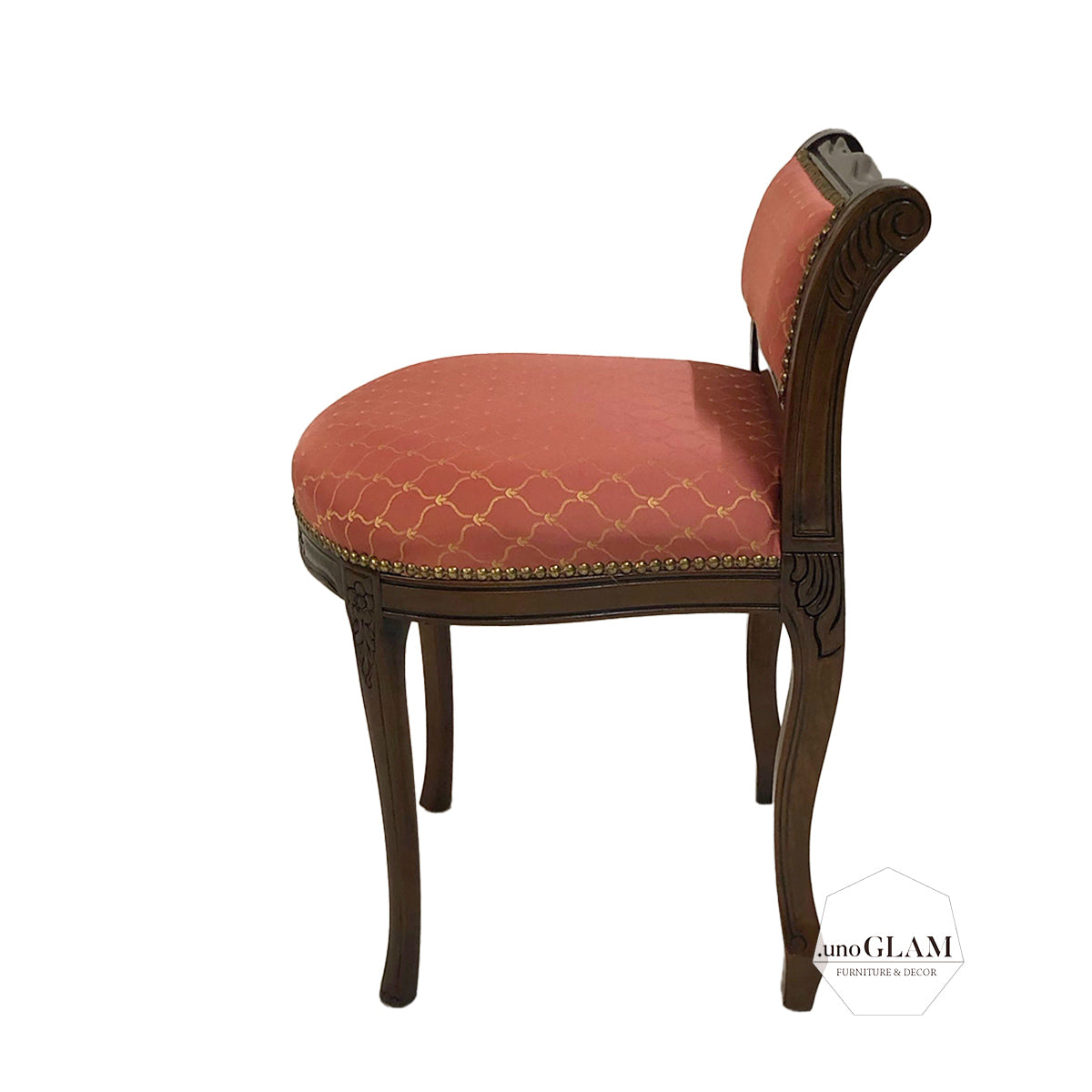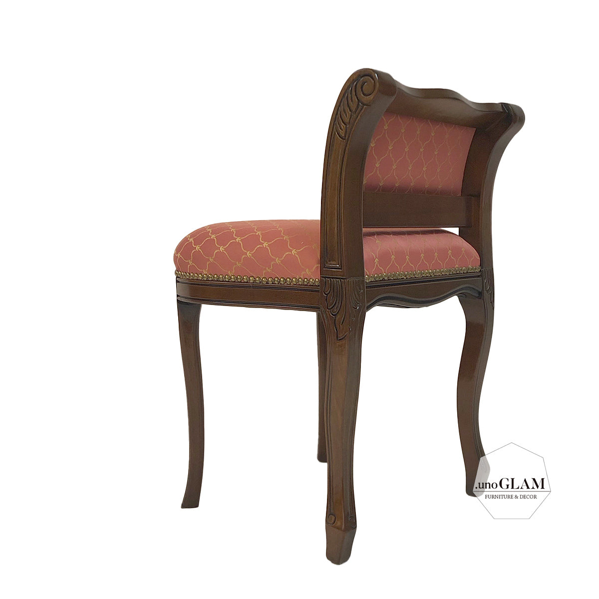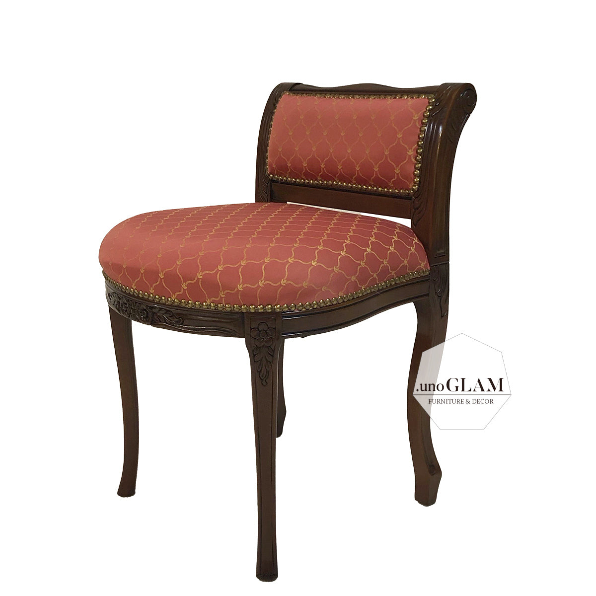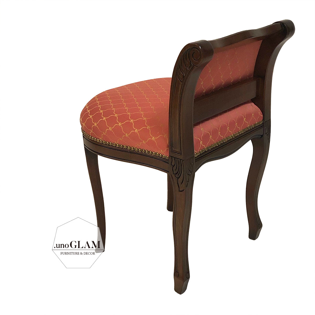 エンジ色の上品な張地と伝統的なイタリアンクラシックが愛らしい猫脚スタイルのチェア。ゴールドの格子模様がシンプルで上品な雰囲気を醸し出します。生地は張りがありパリッとした触り心地です。